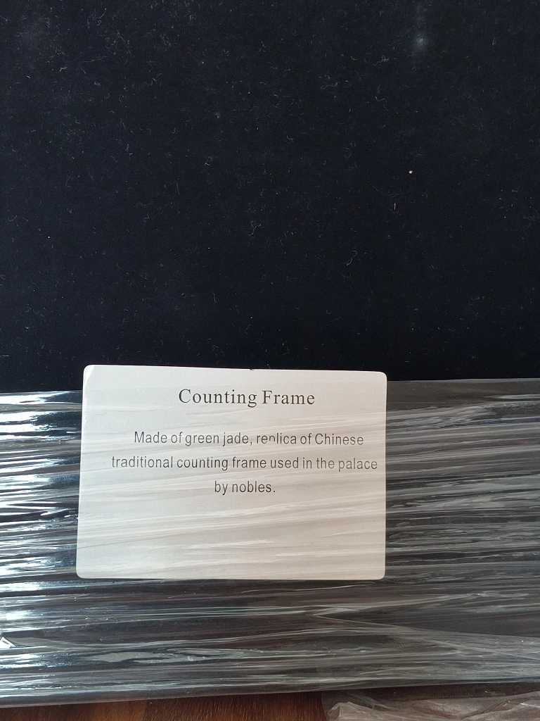 Framed jade counting frame, a replica of the traditional counting frame used in the palace by nobles.