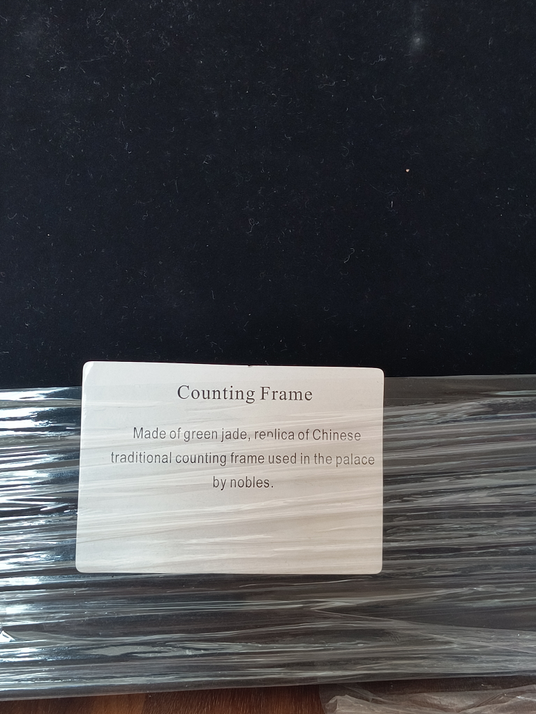 Framed jade counting frame, a replica of the traditional counting frame used in the palace by nobles.