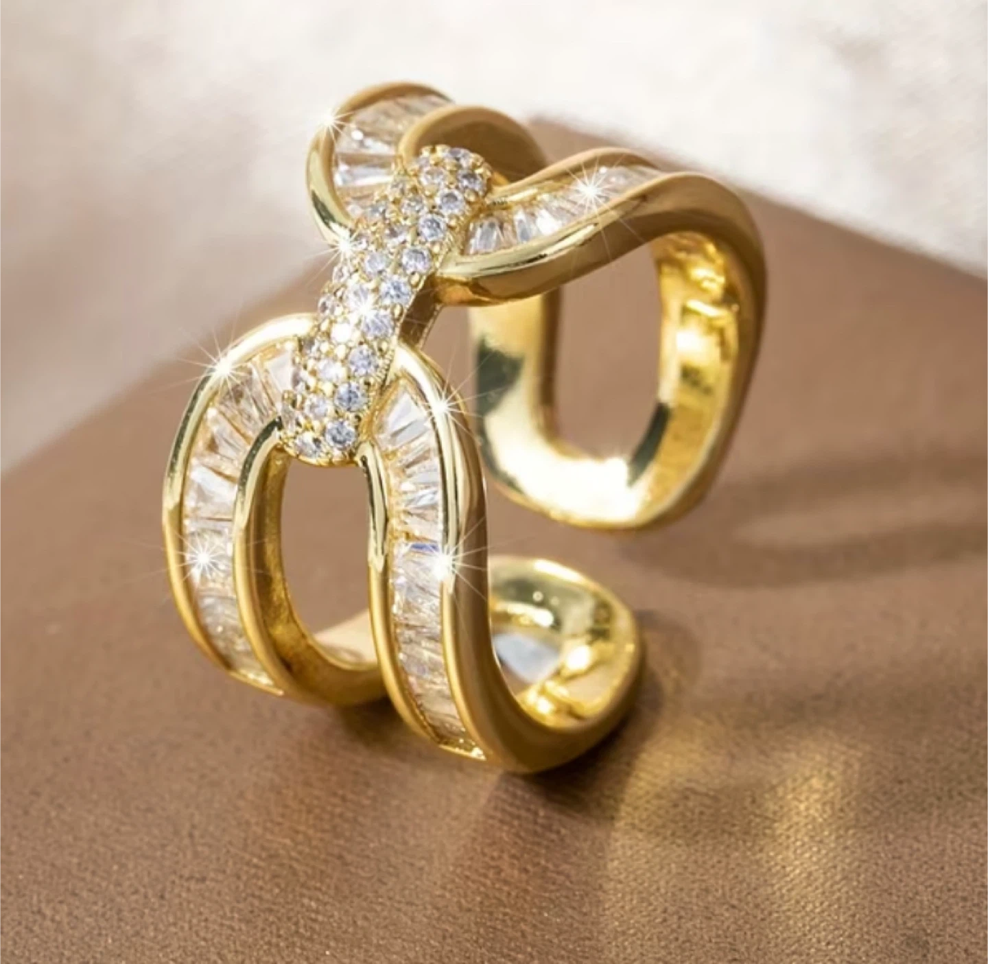 Selling a beautiful gold-tone ring, perfect for adding a touch of sparkle to any outfit! The ring features sparkling cubic zirconia stones that catch the light beautifully. It's in great condition and ready to be worn!