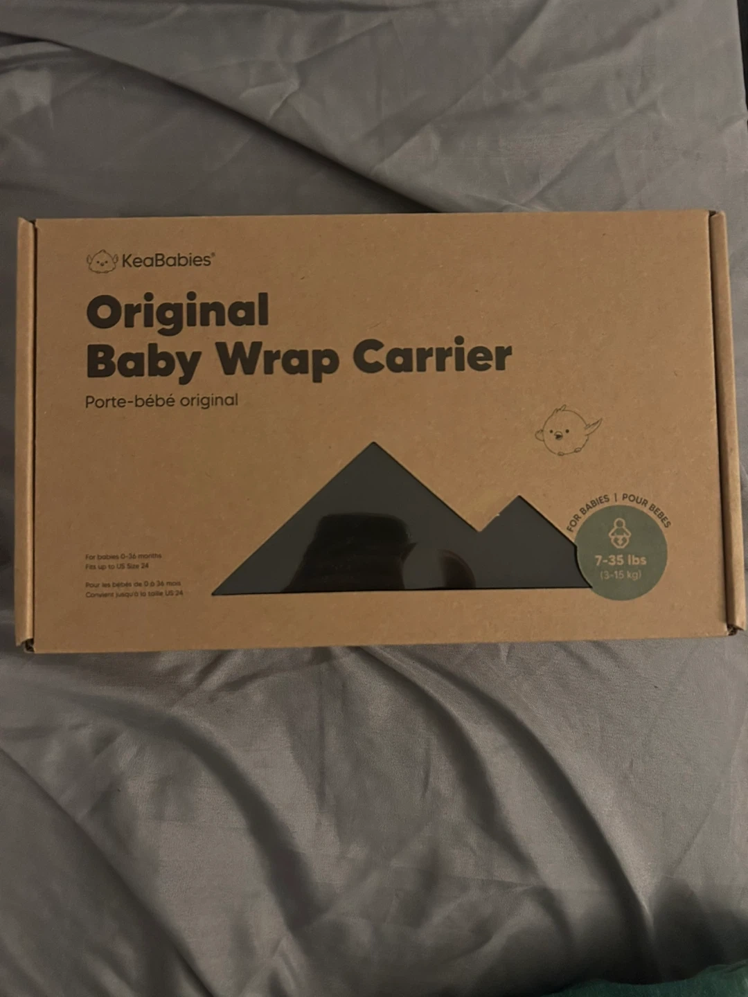 Selling a KeaBabies Original Baby Wrap Carrier! It's suitable for babies aged 0-36 months and fits up to US size 24. The weight range is 7-35 lbs (3-15 kg). The box is included