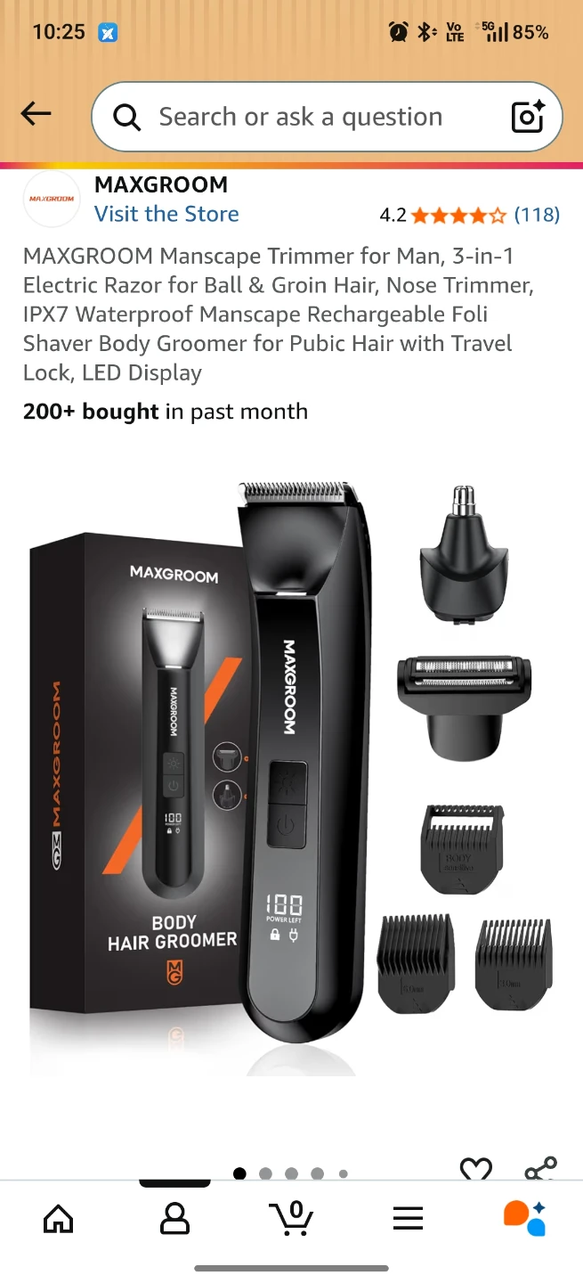 MAXGROOM Manscape Trimmer for Man, 3-in-1 Electric Razor for Ball & Groin Hair, Nose Trimmer, IPX7 Waterproof Manscape Rechargeable Foli Shaver Body Groomer for Pubic Hair with Travel Lock, LED Display