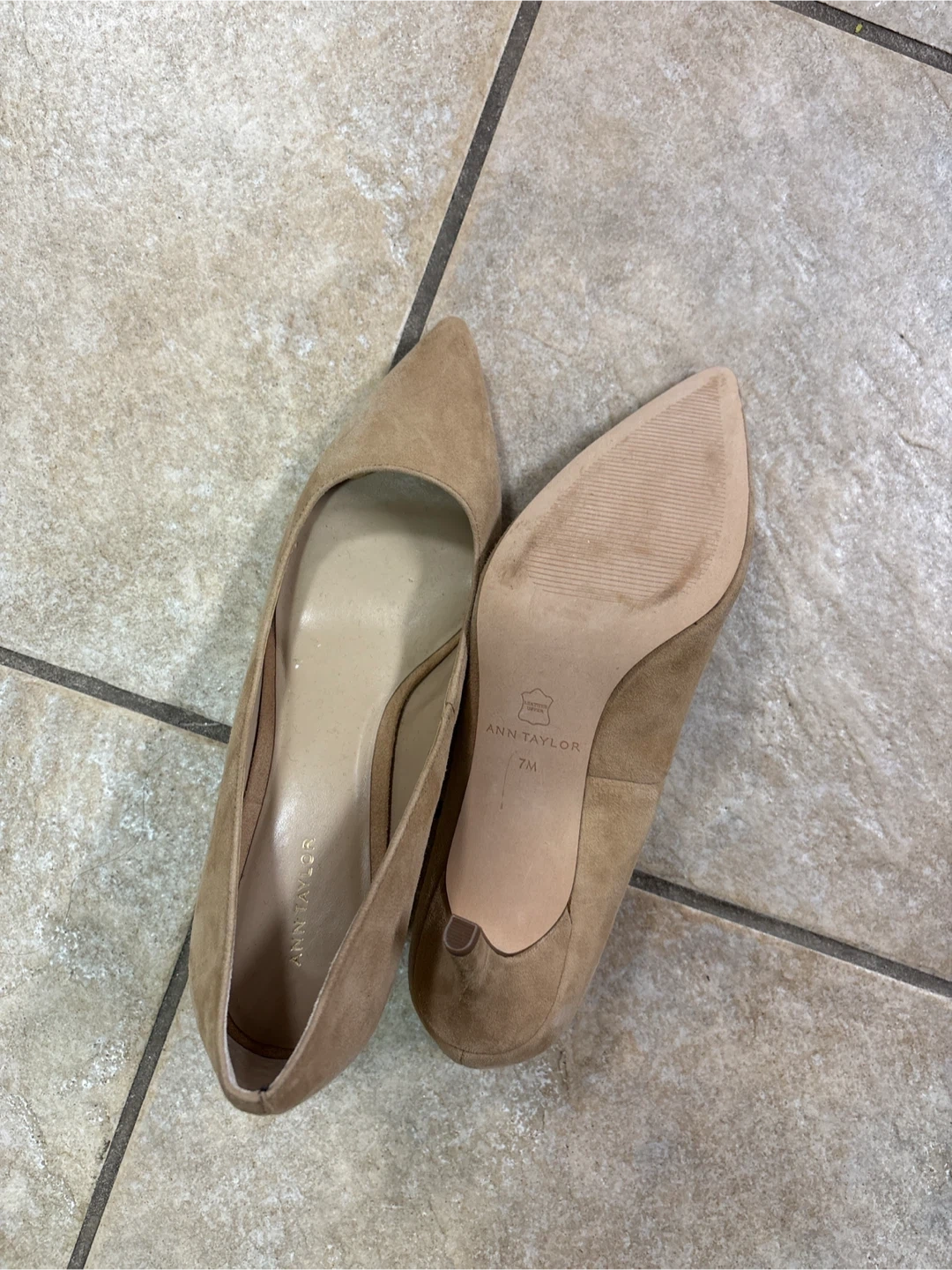 Selling a pair of Ann Taylor heels in a lovely beige suede.