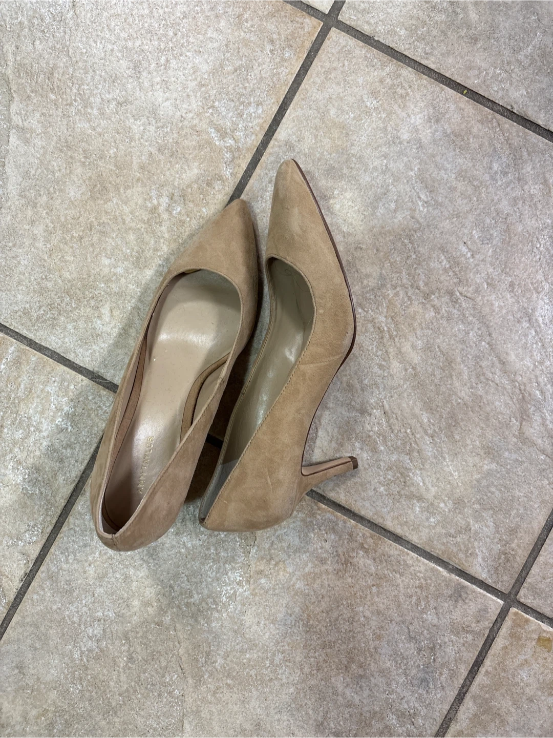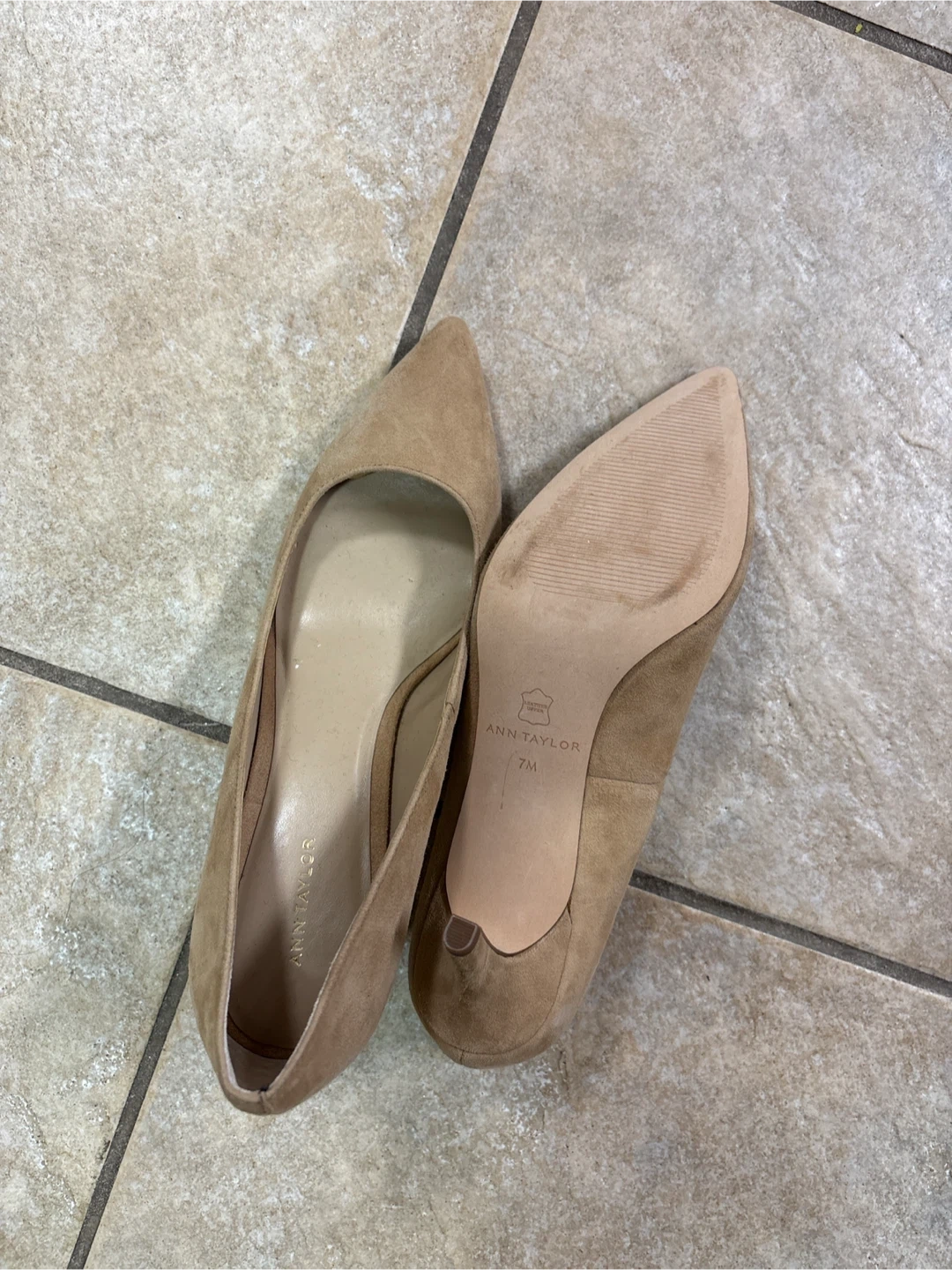 Selling a pair of Ann Taylor heels in a lovely beige suede.