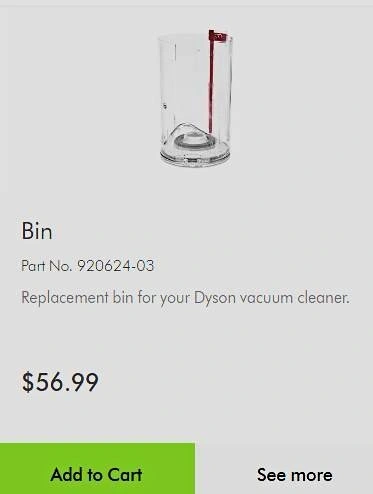 Replacement dust bin clip for Dyson vacuums, part no. 920624-03. This is for repair purposes only and does not include the bin. Compatible with: The "Ball" Upright Series (Most Common) Dyson Ball Animal 2, Dyson Ball Animal 3, Dyson Ball Multi Floor 2 (UP19), Dyson Ball Allergy. The DC Series: DC41, DC65, DC66, DC43 (upright Ball version), DC55. Also fits UP numbers: UP13 (Ball Animal 2), UP20 (Ball Animal 2 Total Clean), UP30 (Ball Animal 3).