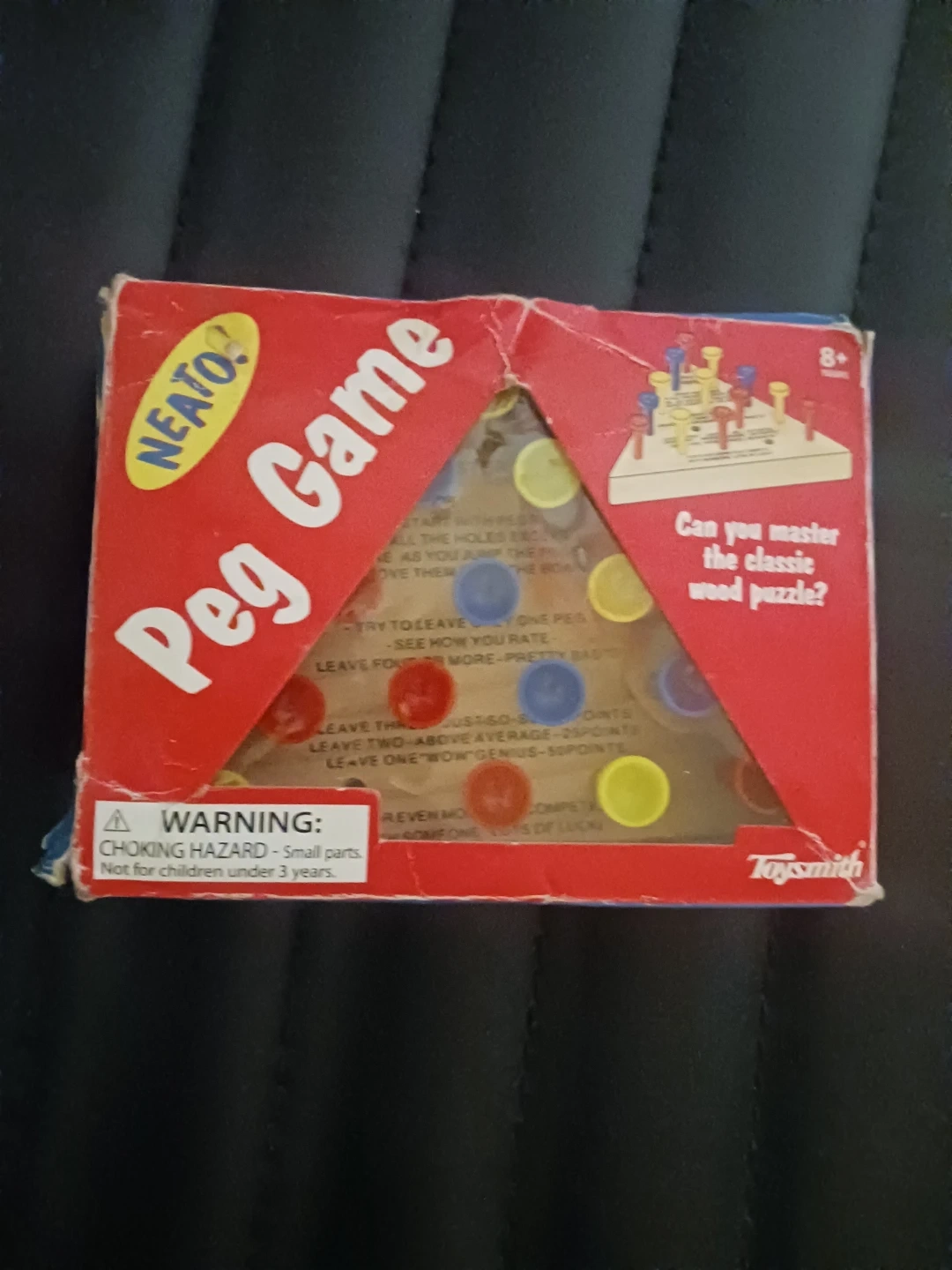 This classic wood puzzle game is fun for all ages. It's designed to challenge your strategic thinking. Includes colorful pegs for gameplay.