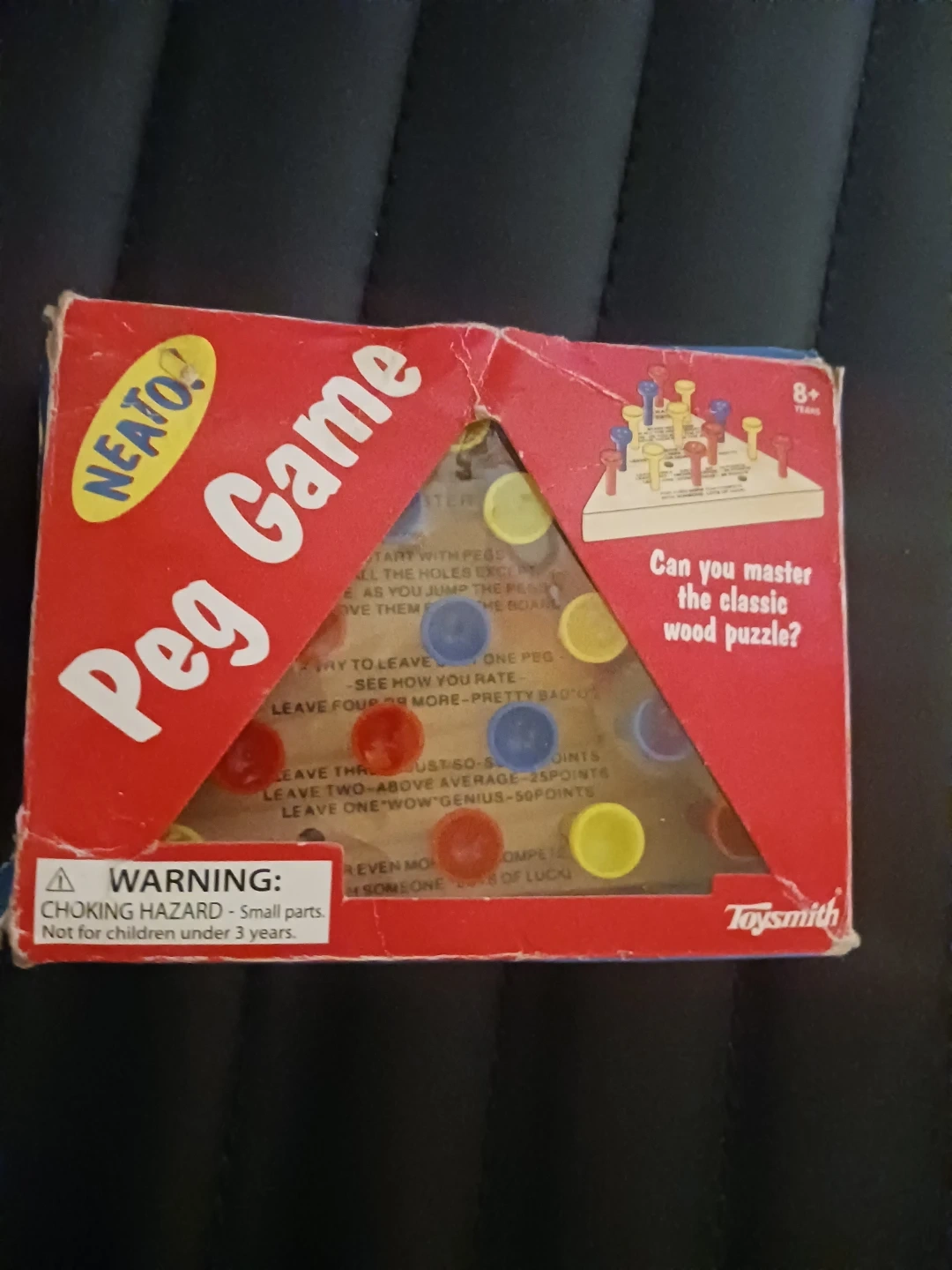 This classic wood puzzle game is fun for all ages. It's designed to challenge your strategic thinking. Includes colorful pegs for gameplay.