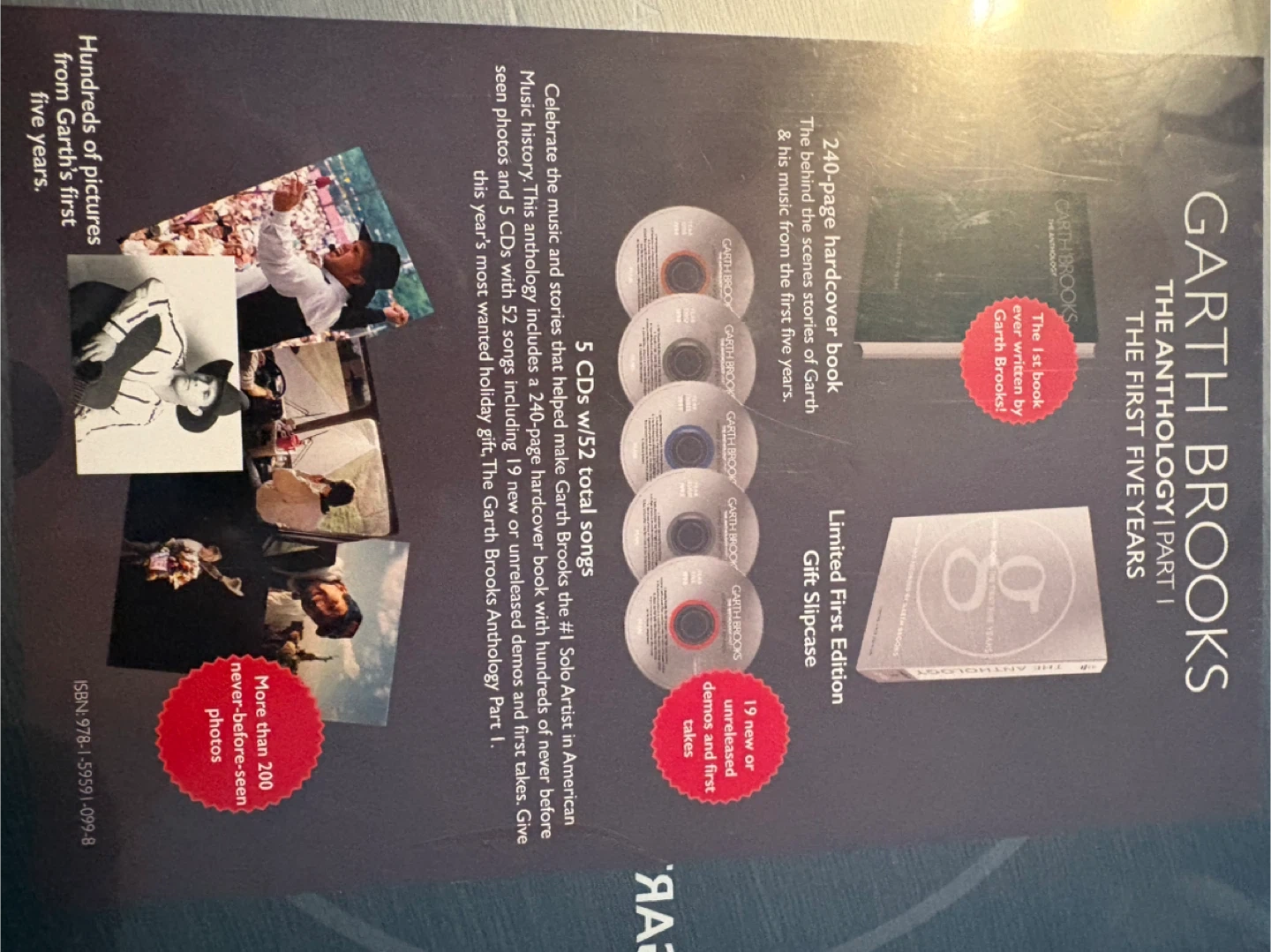 This limited first edition set includes 5 CDs with over 50 songs, featuring 19 new or unreleased versions. It also has a 240-page hardcover book with over 150 never-before-seen photographs. Celebrate the music and stories of Garth Brooks' first five years!