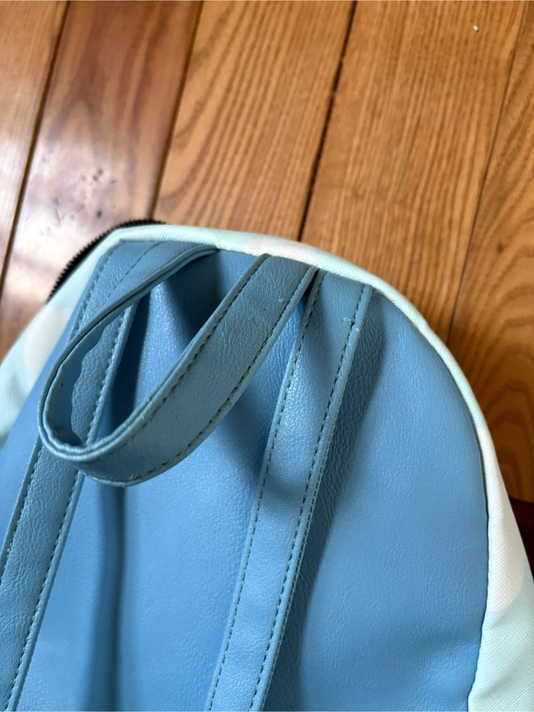 Has a one two chips in the faux leather as seen in photos! Aside from that super clean inside and out!