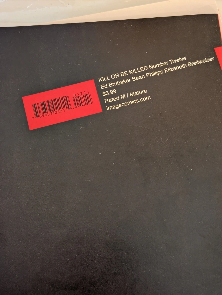 Three graphic novels: Kill or Be Killed #12, #13, and #14. Image Comics. By Ed Brubaker, Sean Phillips, and Elizabeth Breitweiser.