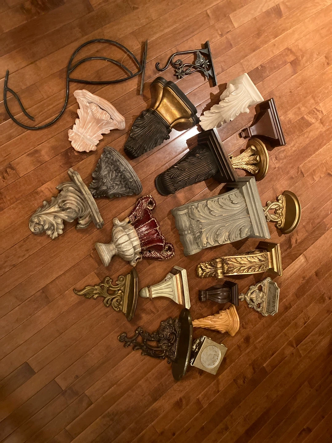 This is a collection of decorative wall sconces, shelves, and brackets and ornamental accents. $5 each or best offer. Take one or take all.