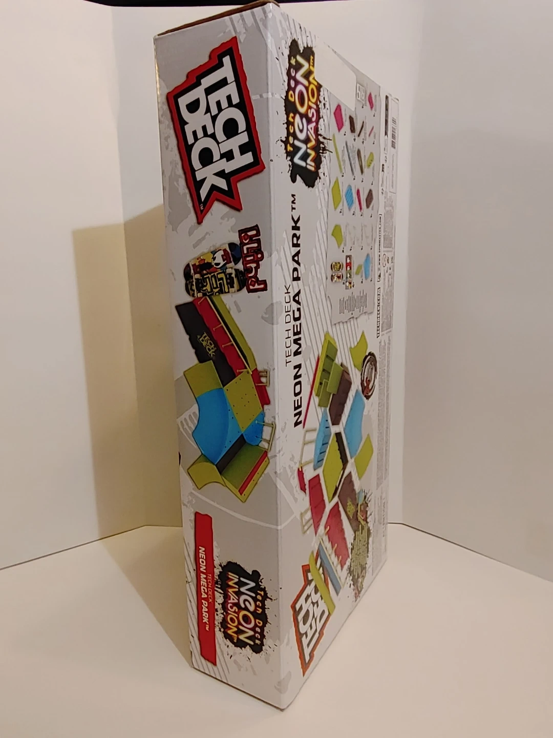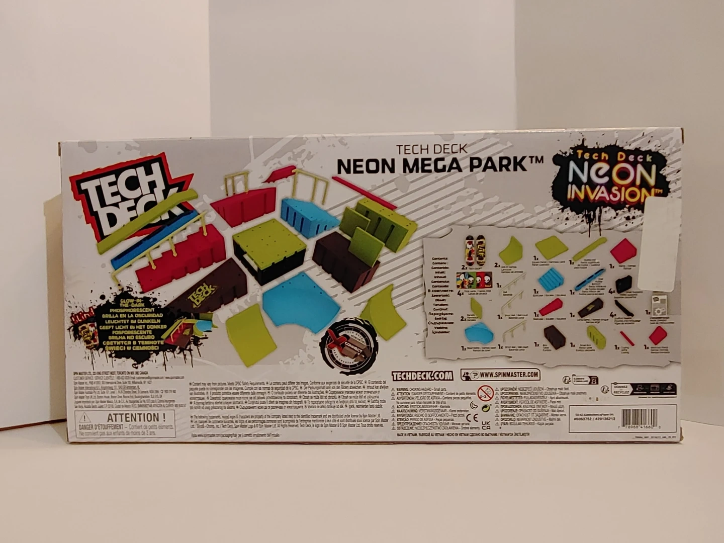 This is a Tech Deck Neon Mega Park playset. It includes 2 boards and 4 trick cards. Recommended for ages 6 and up.