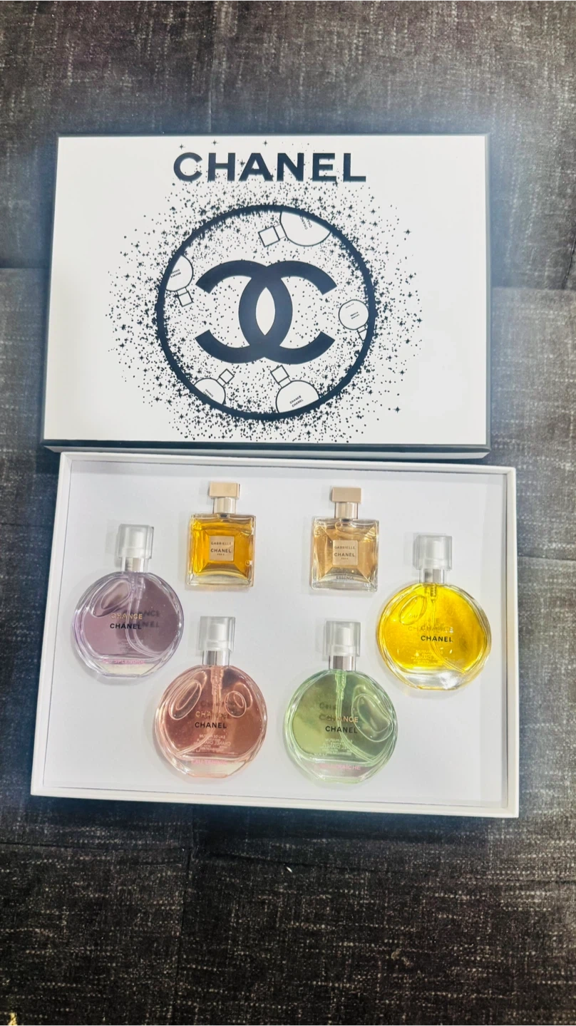 This is a CHANEL Chance Eau de Parfum collection gift set. It includes 4*30ml nd 2*10 mini fragrances: Chance Eau Tendre, Chance Eau Fraiche, Chance Eau Vive, Chance Eau de Parfum, Chance Eau de Toilette, and Chance. A great way to try different CHANEL scents!