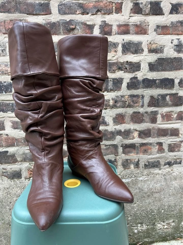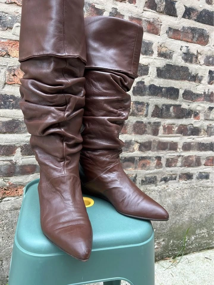 Vintage Y2K 2000 Brown soft leather slouch boots by HUGO BOSS in excellent condition. Made with in Italy. Size 38 US 7.5