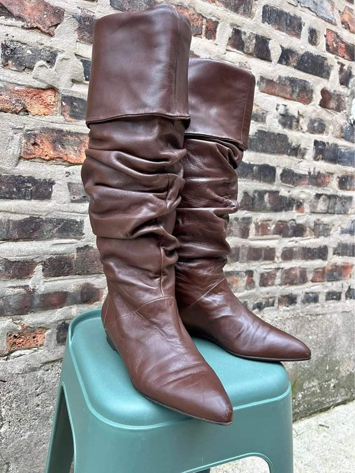 Vintage Y2K 2000 Brown soft leather slouch boots by HUGO BOSS in excellent condition. Made with in Italy. Size 38 US 7.5