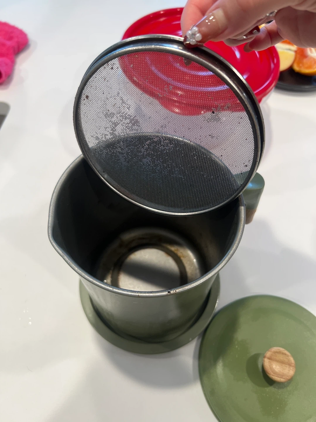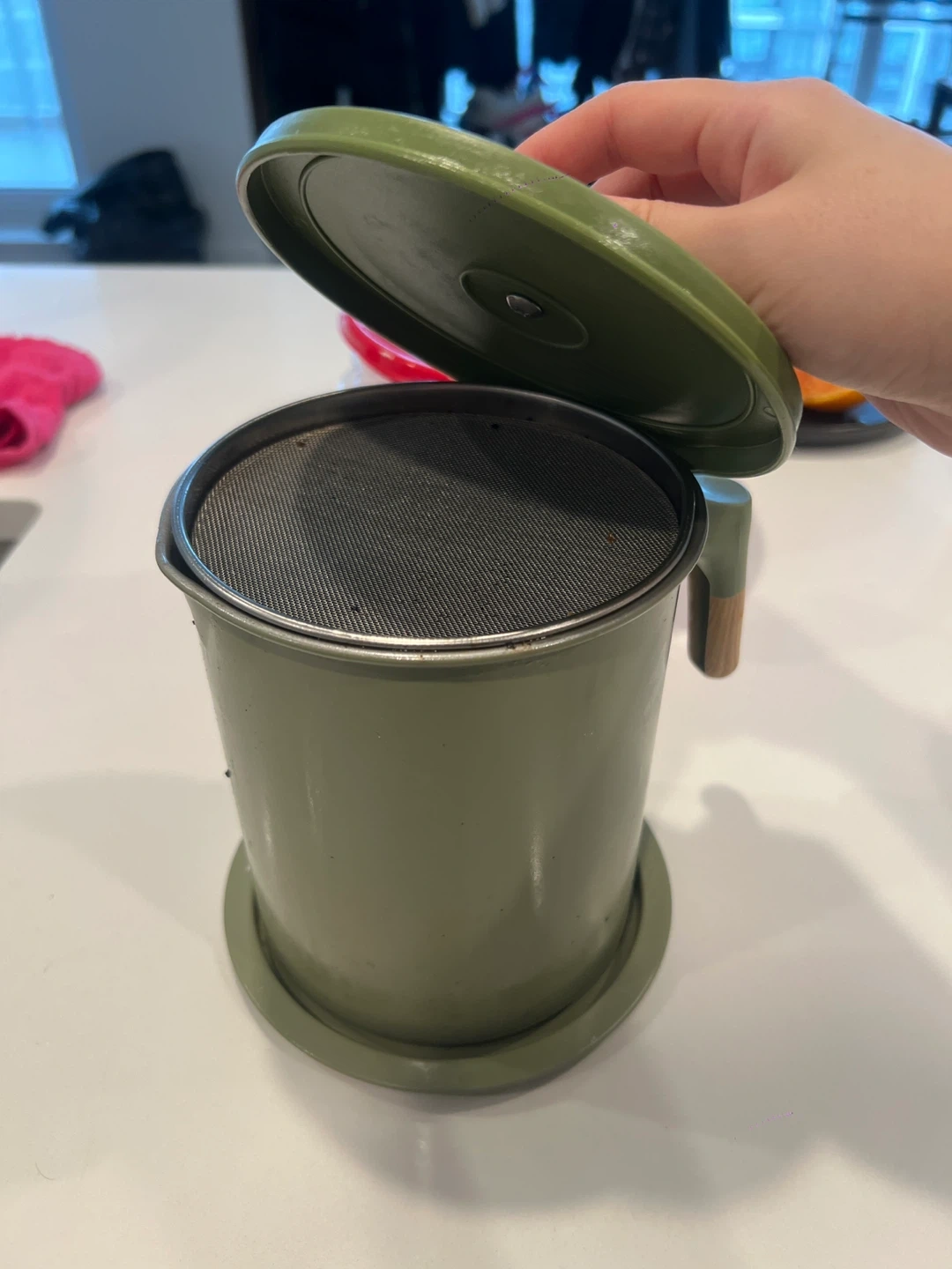 Buy & SellGreen Oil Strainer PotGreen Oil Strainer Pot$5This pot is designed for straining and storing cooking oil. It features a fine mesh strainer to catch food particles. The handle is made of wood.ConditionGoodWHERE TO MEETMetrotown skytrainView MapSELLERverifiedAnge FoxMetrotown27526 reviews0 chats·1 favorites·37 viewsSEND CHAT TO SELLERHi Ange Fox! I’m interested in your listing.Hi Ange Fox! I’m interested in your listing.Get the Karrot app to chatSign In to chat