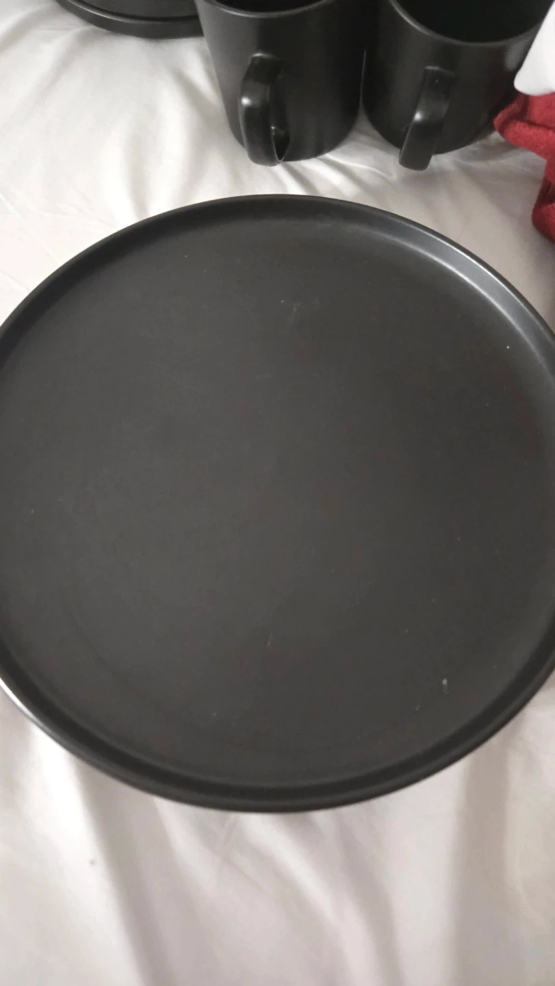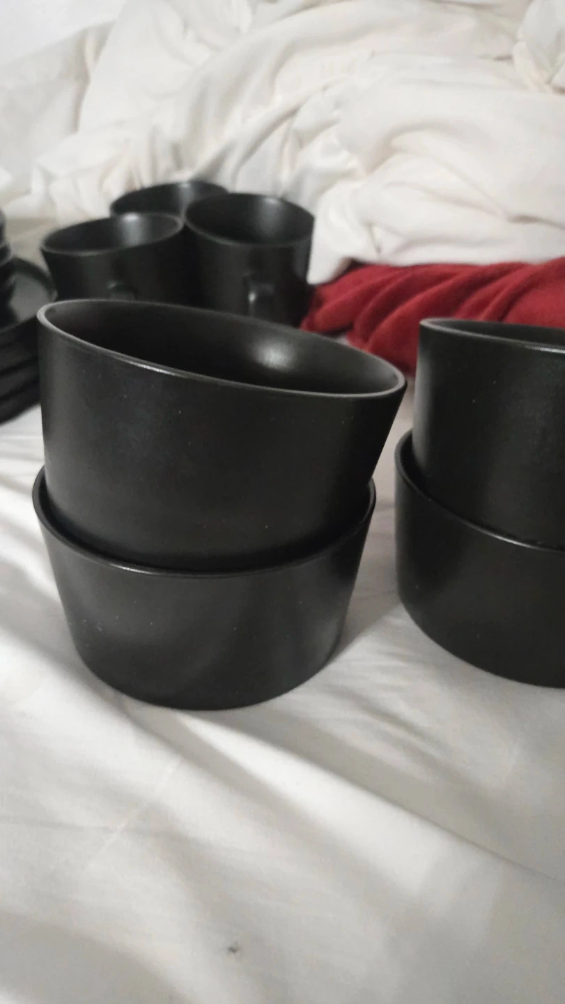 Selling a set of black dinnerware. Includes plates, bowls, and mugs. Great for everyday use or special occasions! See pieces are messing.