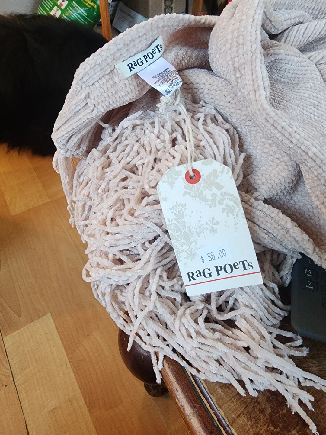 Rag Poets Knit Scarf Shawl Taupe Fringe