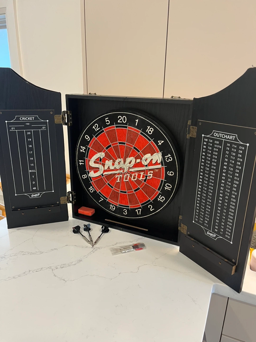 Snap-On Tools Deluxe Dartboard, Cabinet & Darts