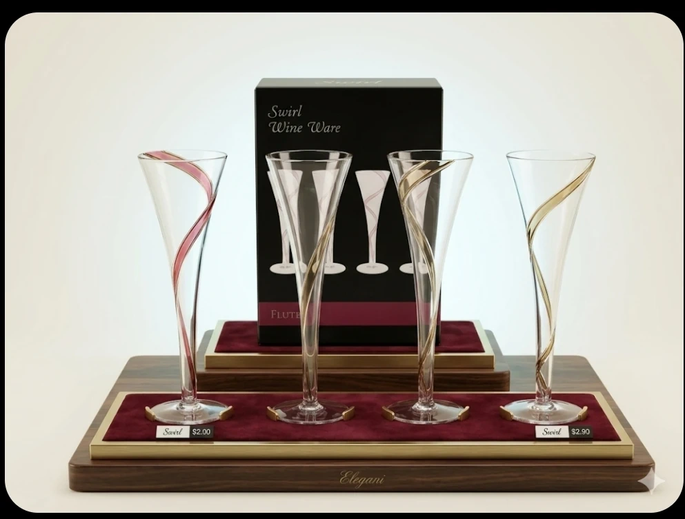 Unique Design: Each 8oz (240ml) flute features a delicate, hand-styled swirl in a different color: Pink, Sky Blue, Soft Yellow, and Silver-Grey.