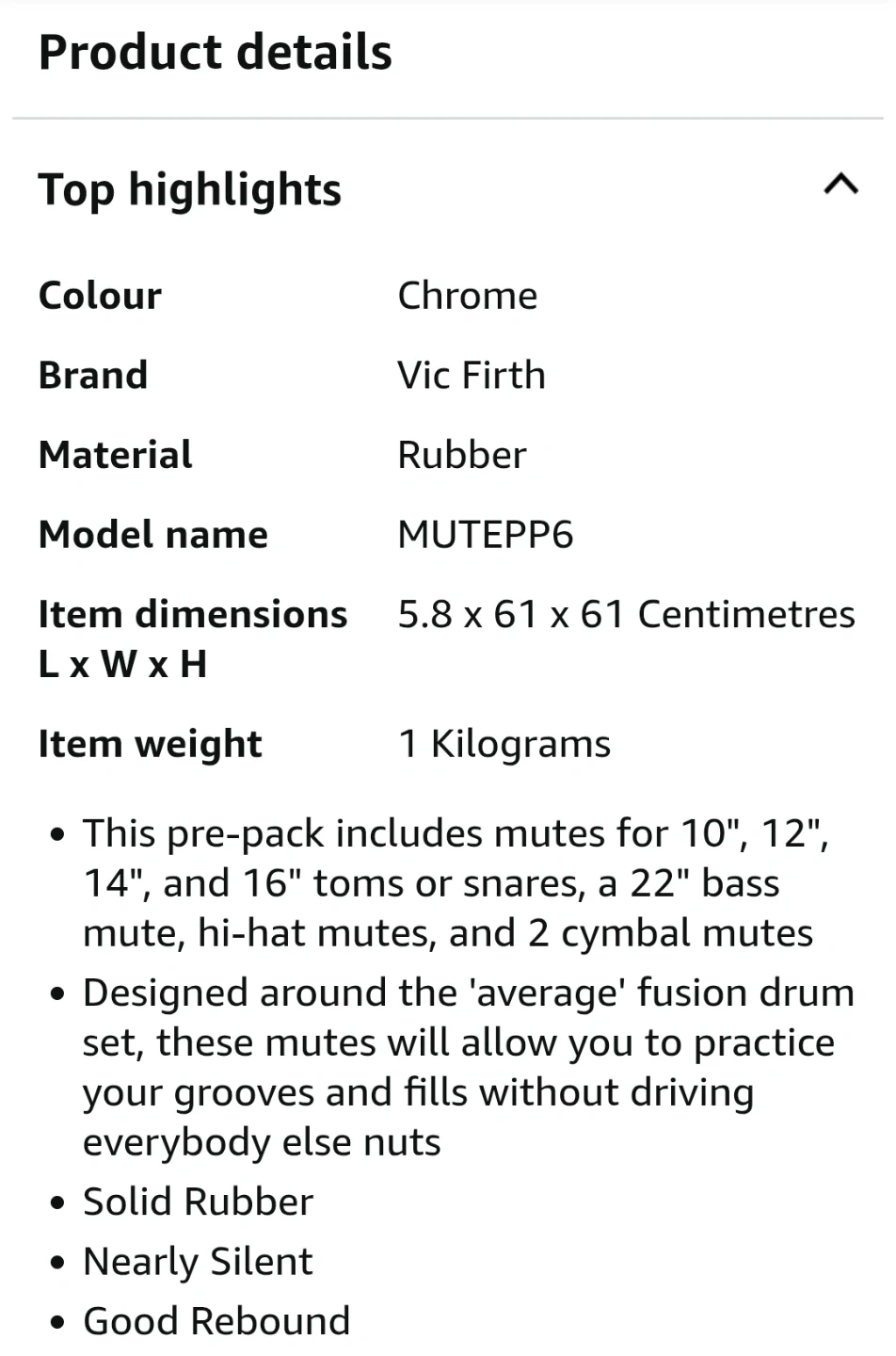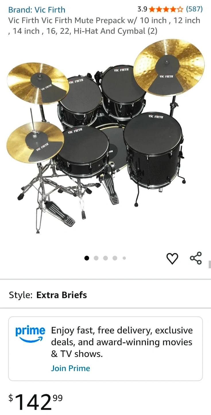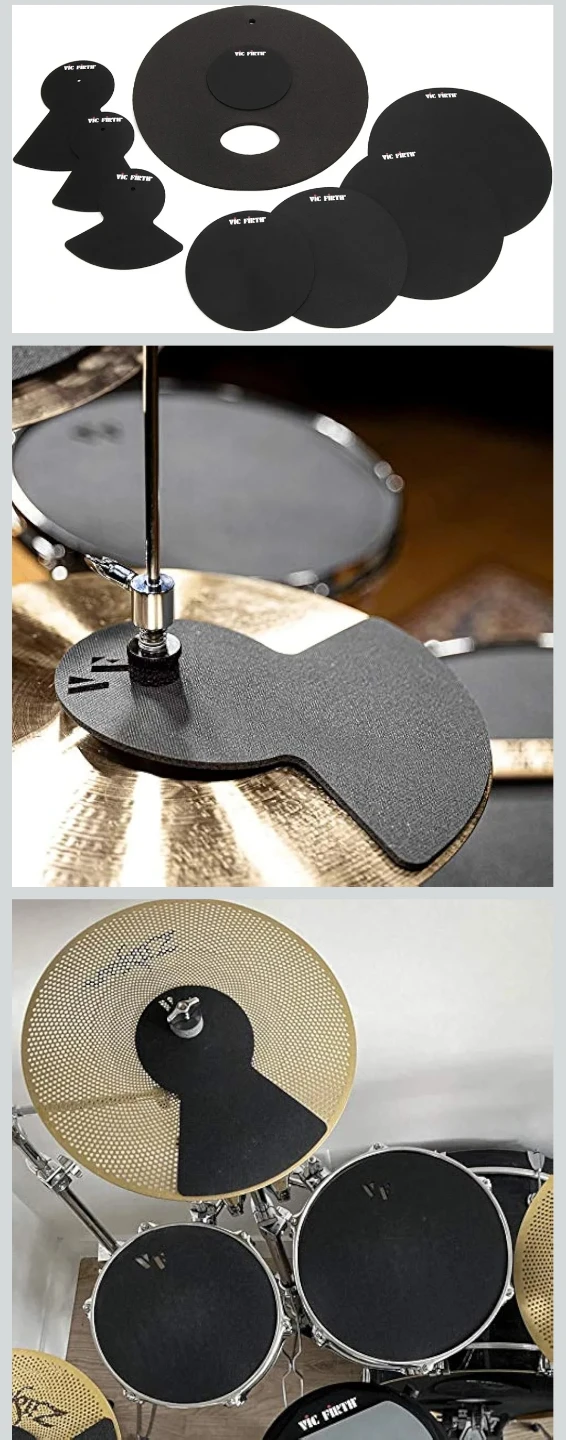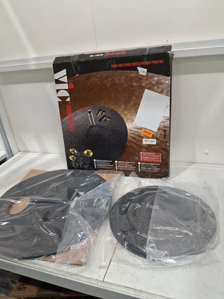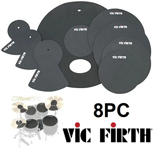 This is a Vic Firth drum mute prepack designed for an average fusion drum set, including mutes for 10", 12", 14", and 16" toms or snares, a 22" bass mute, hi-hat mutes, and 2 cymbal mutes. These drum mutes are nearly silent, made of solid rubber, and offer good rebound. This set is in new condition, complete in its original packaging. If the ad is up, it's still available, so get your groove on without driving everyone else nuts!