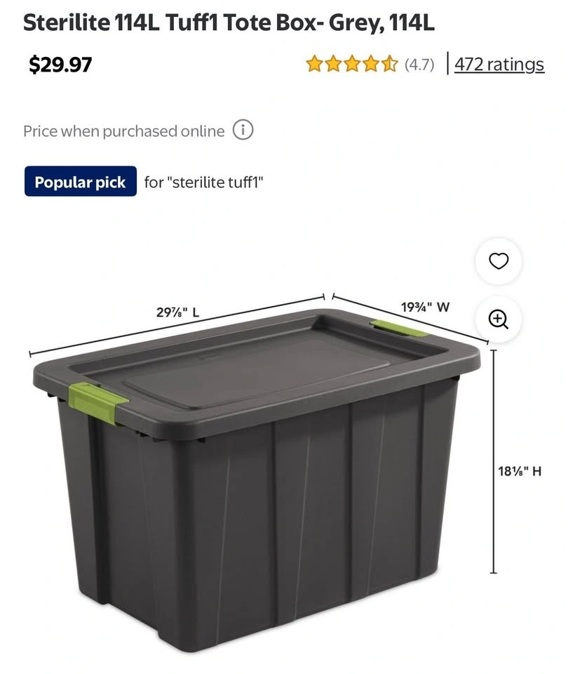Sterilite Tuff1 Tote Storage Bins / Boxes 114L