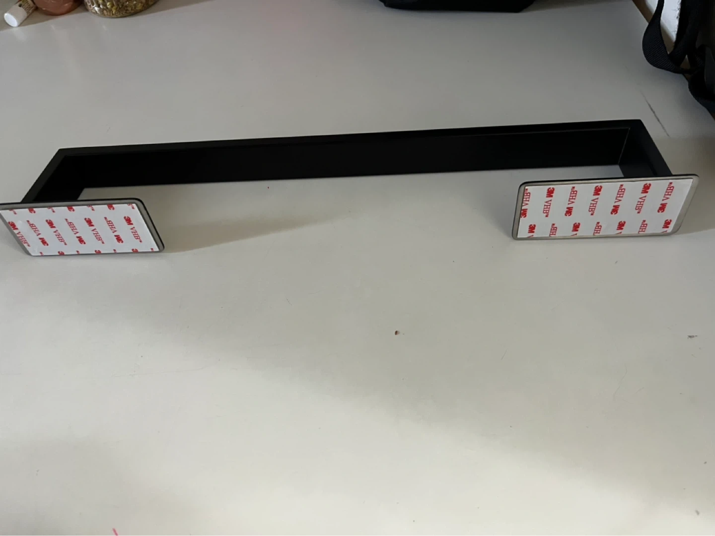 Black Metal Towel Bar with Adhesive Backing