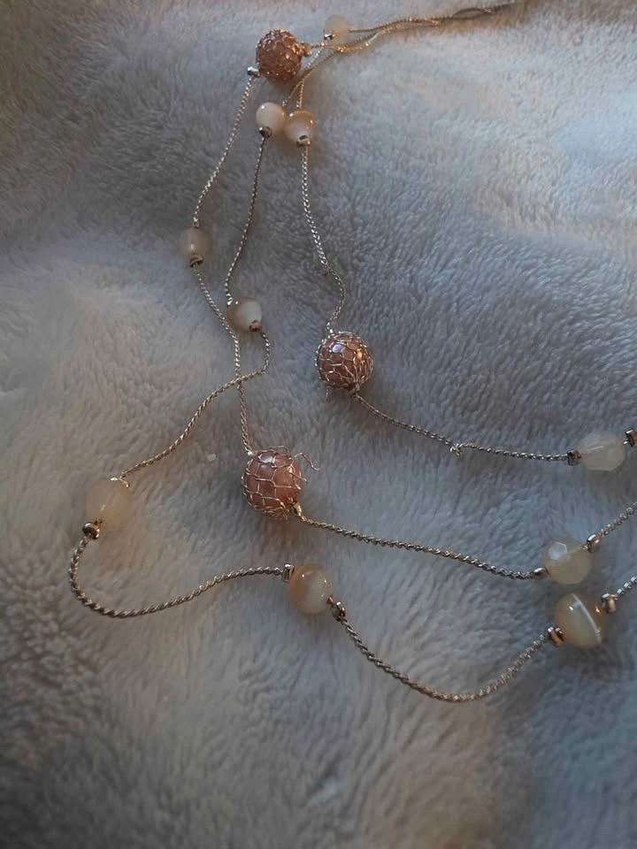 Very beautiful as the thin chain makes it look timeless. Beautiful vintage costume jewelry piece with light pink beads. Check out my other listings for more vintage jewelry.