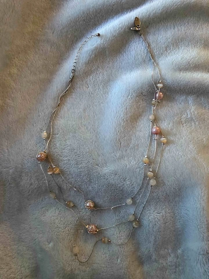 Very beautiful as the thin chain makes it look timeless. Beautiful vintage costume jewelry piece with light pink beads. Check out my other listings for more vintage jewelry.