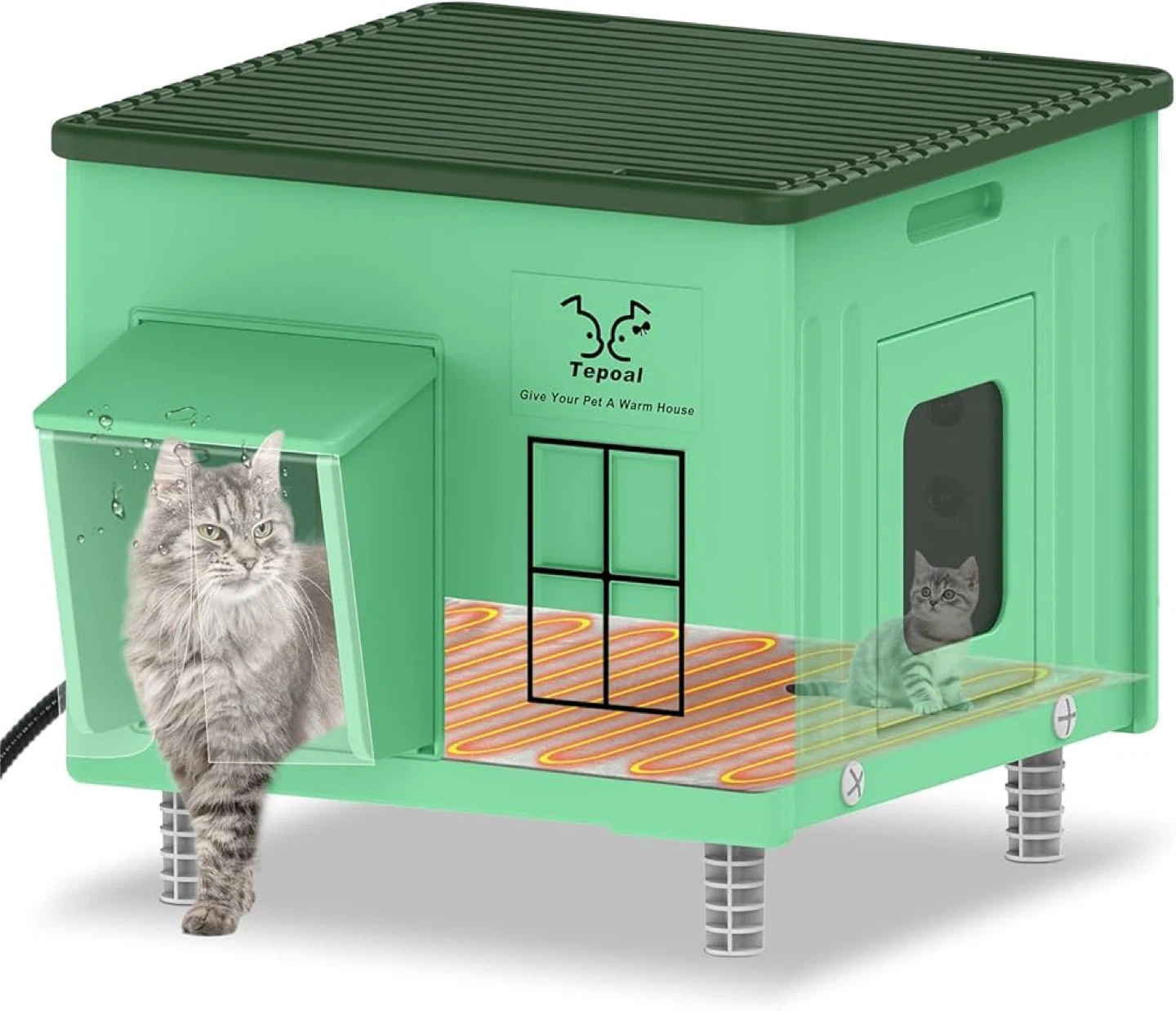 Heated Outdoor Cat House 17.7x15x17.5 in