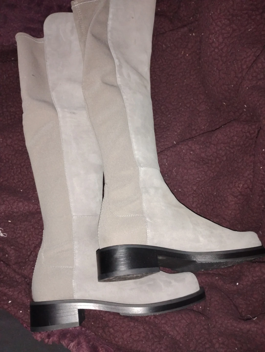 Brand New Stuart Weitzman boots made with grey suede. They come up just over the knee. Perfect for any occasion. Size 6 come with storage bag included when bought. Asking $75