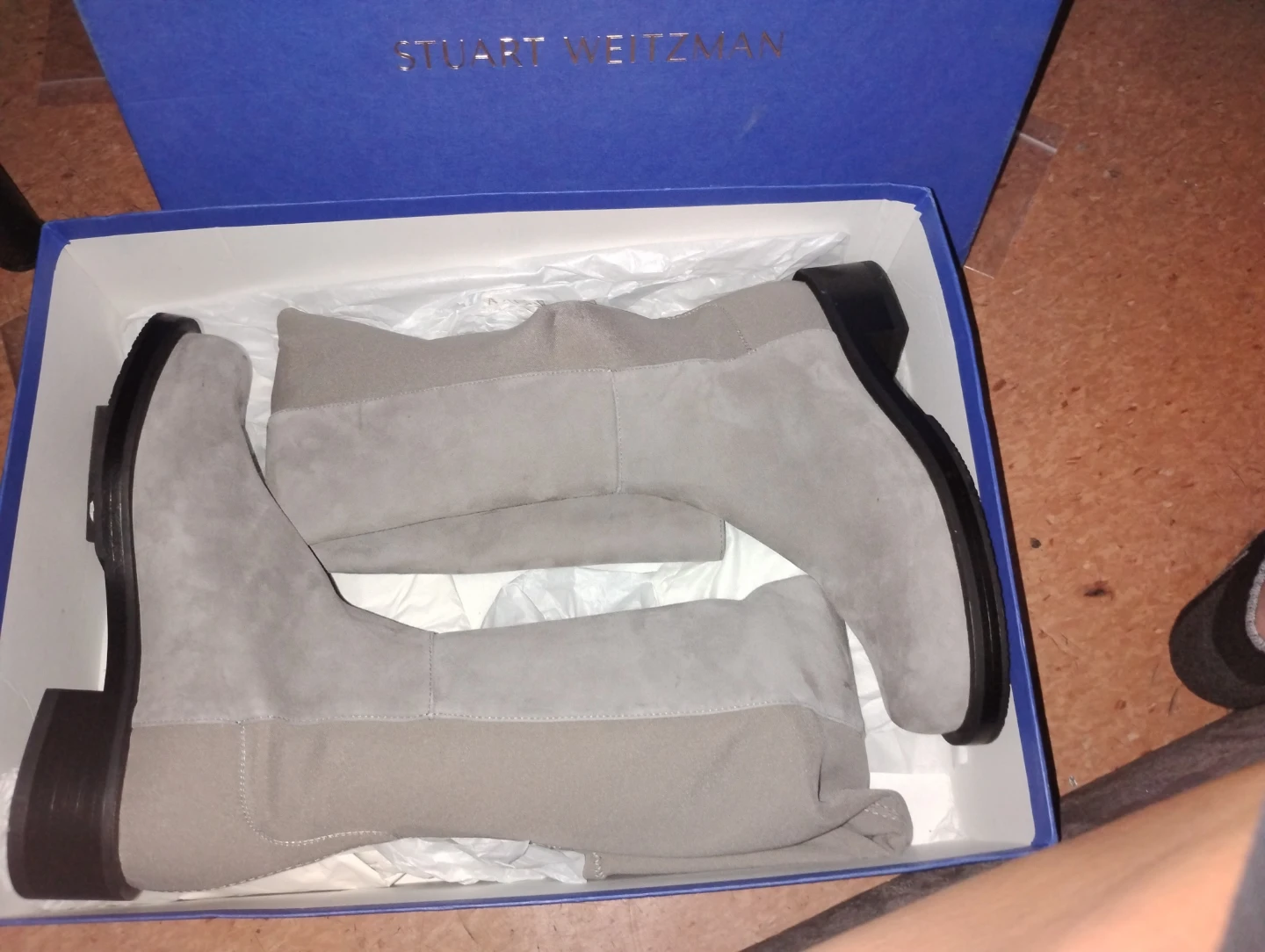 Brand New Stuart Weitzman boots made with grey suede. They come up just over the knee. Perfect for any occasion. Size 6 come with storage bag included when bought. Asking $75