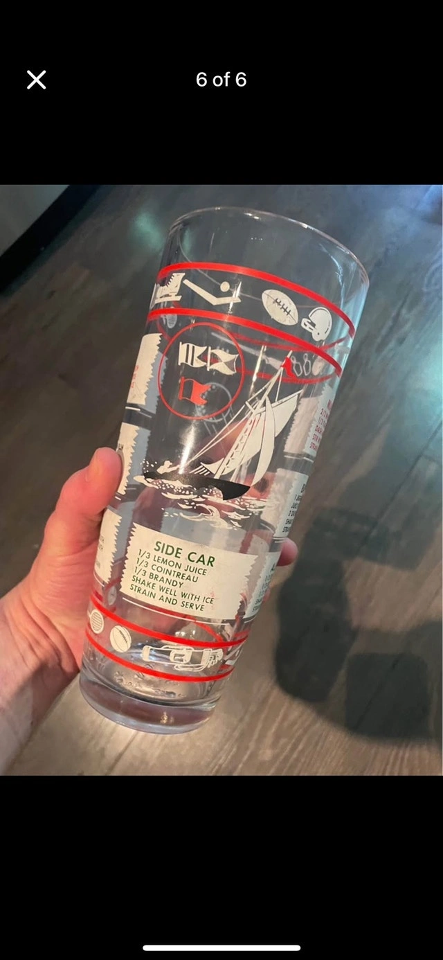 Add a touch of vintage charm to your barware collection with this used cocktail recipe glass, perfect for mixing your favourite drinks with a touch of retro flair. Featuring classic cocktail recipes right on the glass, it's both functional and a great conversation starter!