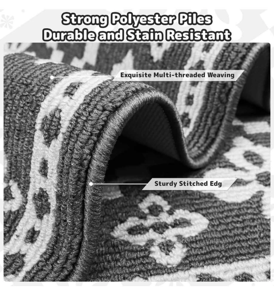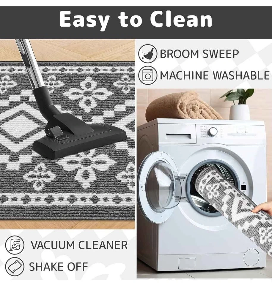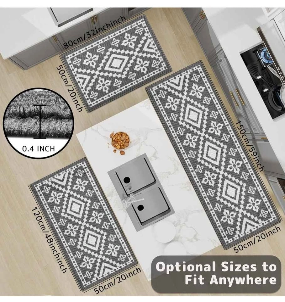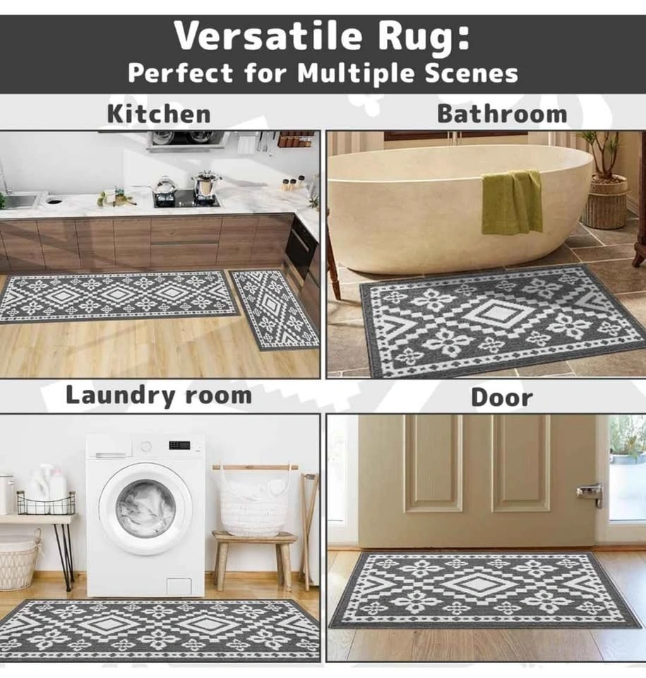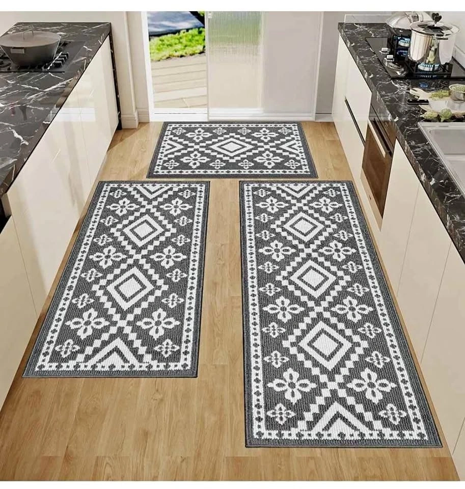 Non-slip kitchen mats for floor. Washable boho kitchen runner rug, absorbent and resists dirt. Great for sink, laundry, or hallways. Grey/Style 1, includes sizes 20"x59", 20"x48", and 20"x32". New, never used.