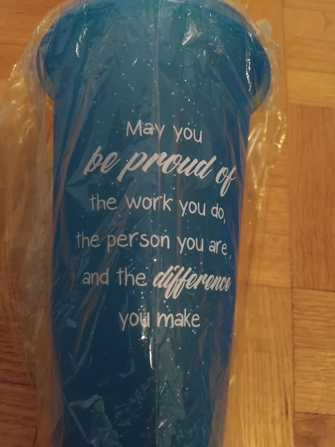 This blue tumbler features an inspirational quote: "May you be proud of the work you do, the person you are, and the difference you make". It's perfect for your daily beverages. It comes with a straw and is nicely gift-wrapped.