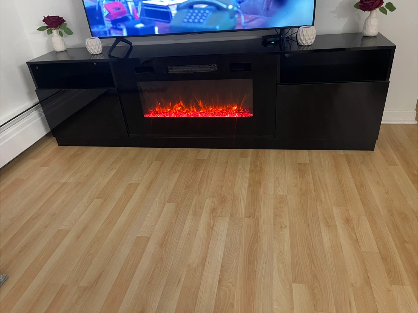 Black Electric Fireplace Media Console
