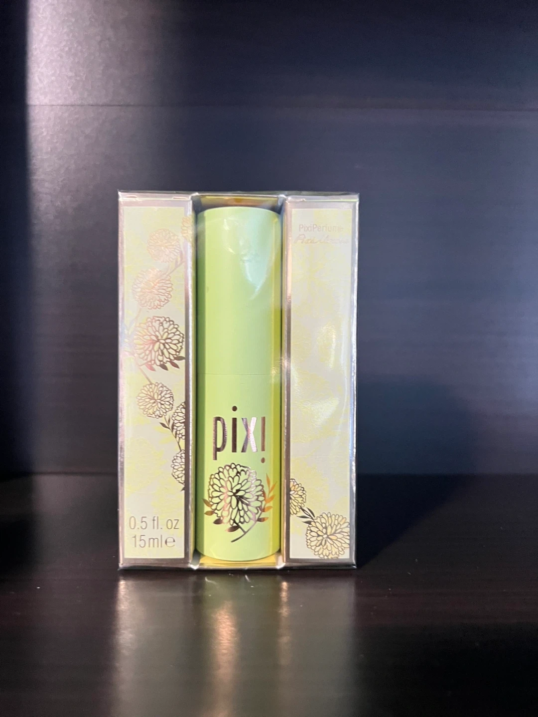This is a Pixi Mimosa perfume. It's a 0.5 fl. oz. / 15ml size. It comes in its original packaging with a floral design.