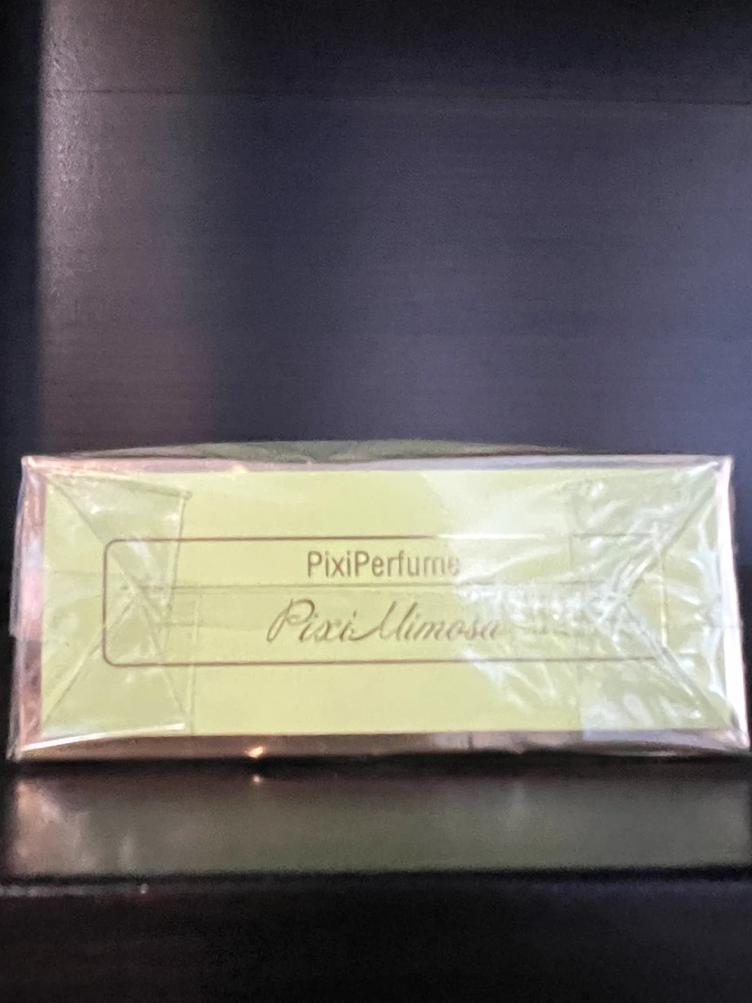 This is a Pixi Mimosa perfume. It's a 0.5 fl. oz. / 15ml size. It comes in its original packaging with a floral design.
