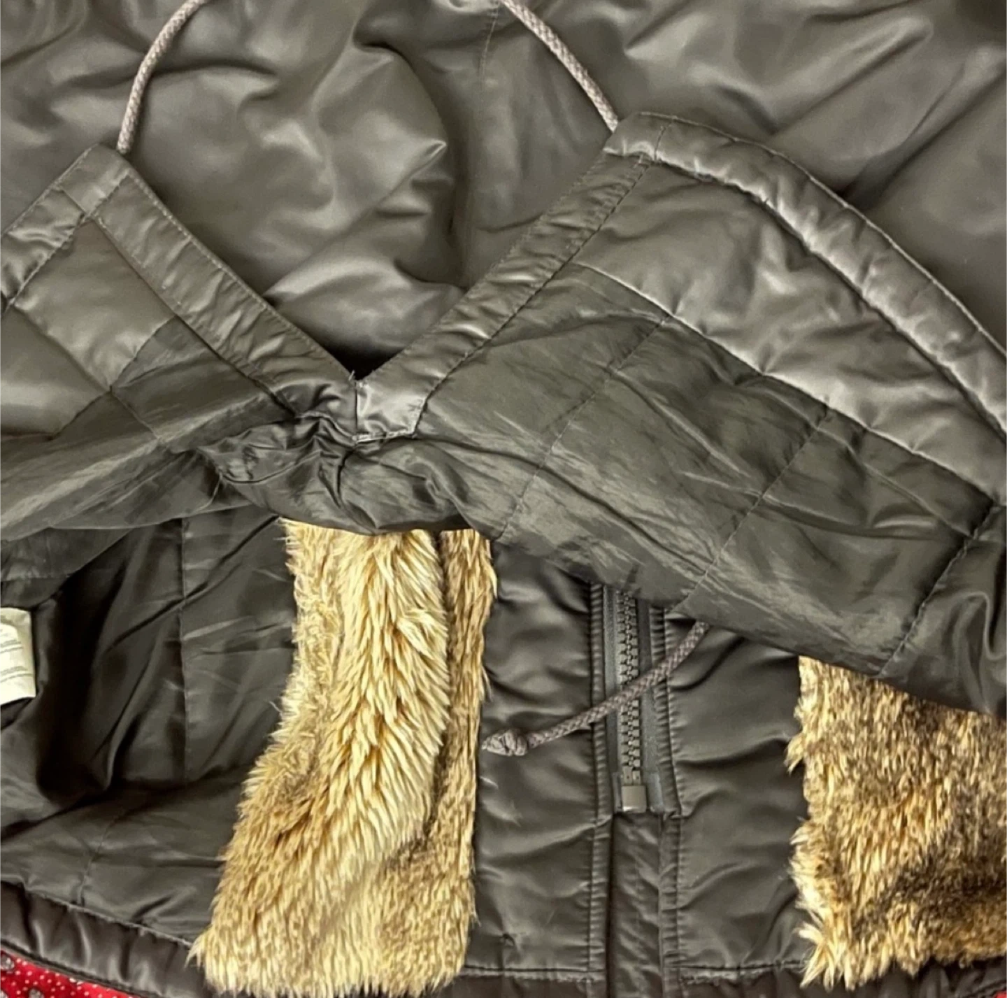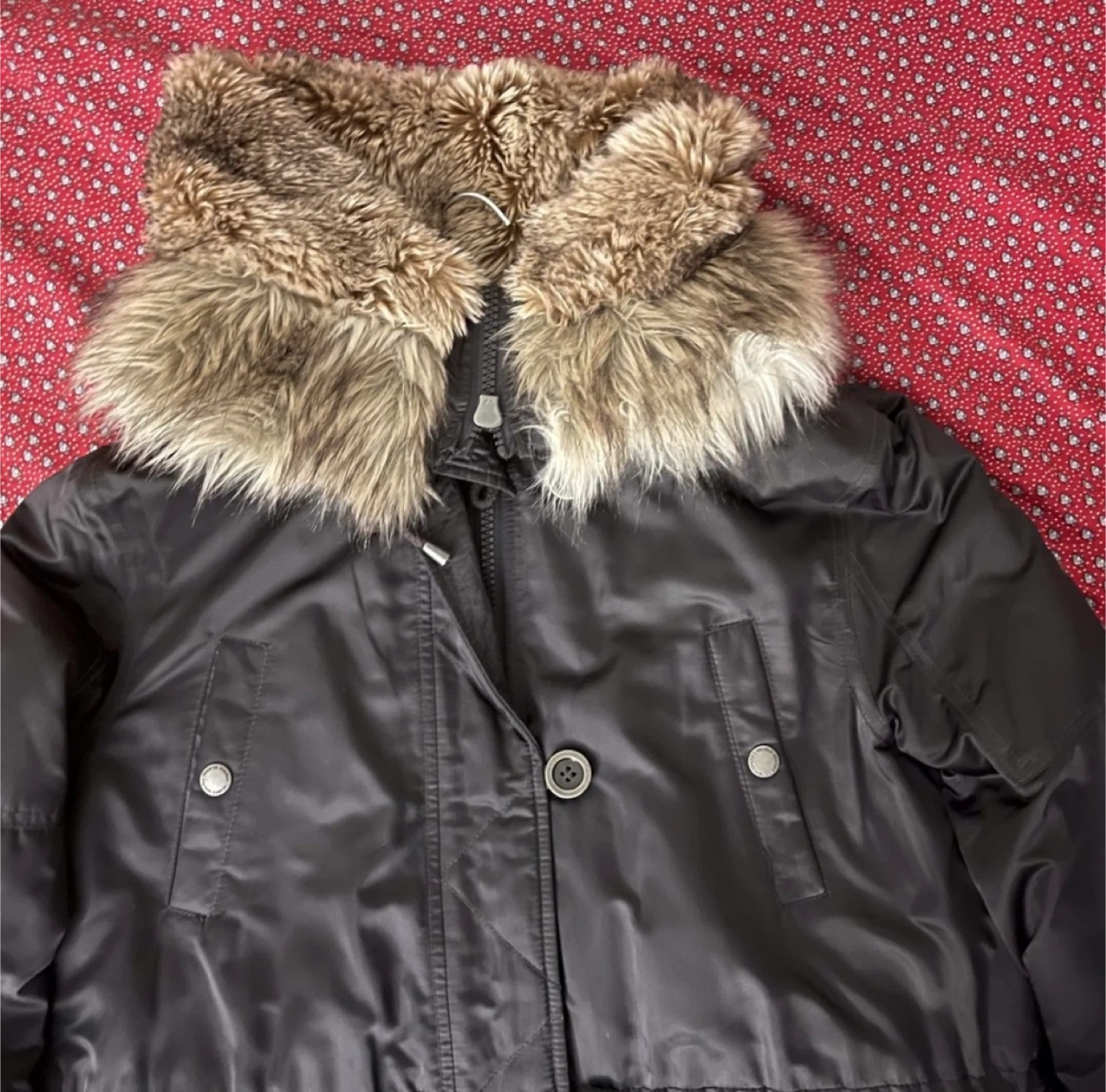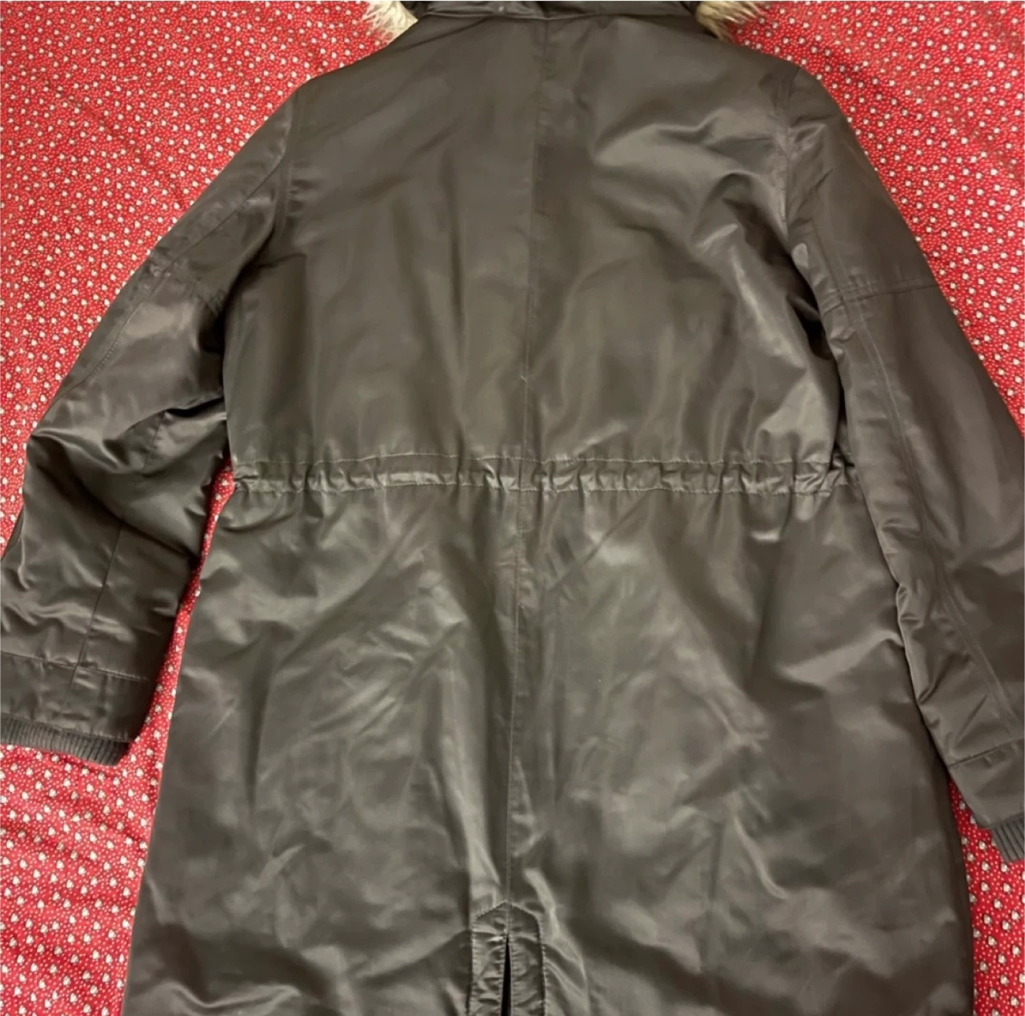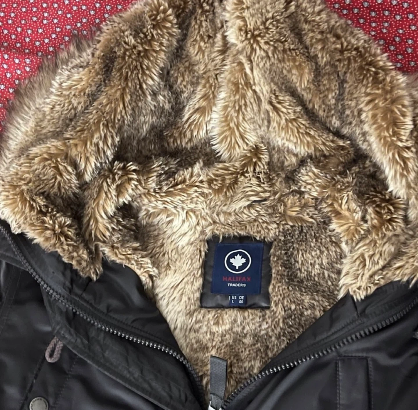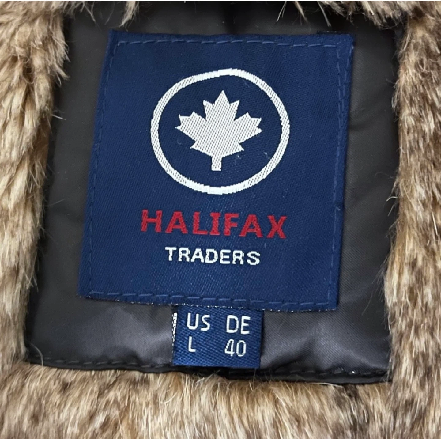 Halifax traders women’s parka CA# 52362. Mid length Faux fur hooded parka jacket. Mid weight fur and full quilted lining. Stand up collar, full front zipper and pockets. Chest 13”; Length 34”; Sleeve length 26”. In excellent condition and great shape. From smoke pet free and healthy home.