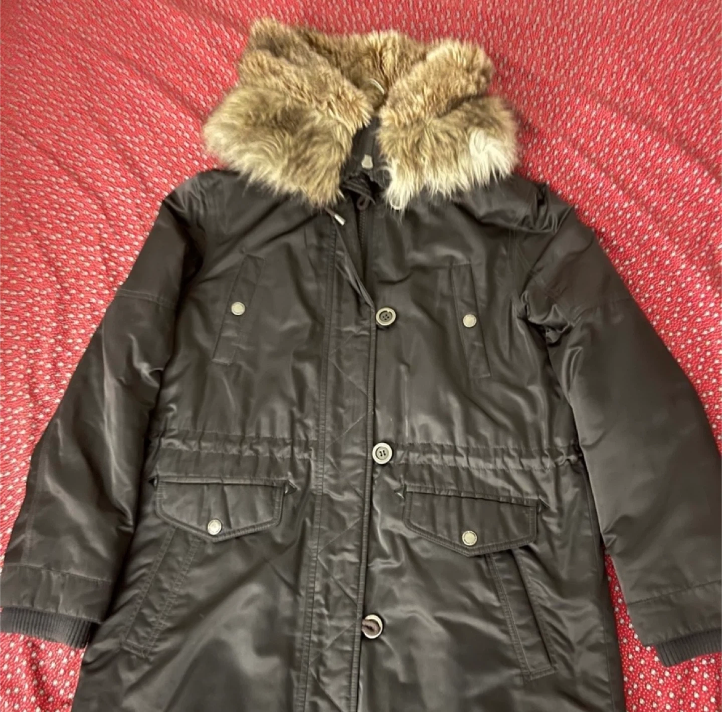 Halifax traders women’s parka CA# 52362. Mid length Faux fur hooded parka jacket. Mid weight fur and full quilted lining. Stand up collar, full front zipper and pockets. Chest 13”; Length 34”; Sleeve length 26”. In excellent condition and great shape. From smoke pet free and healthy home.