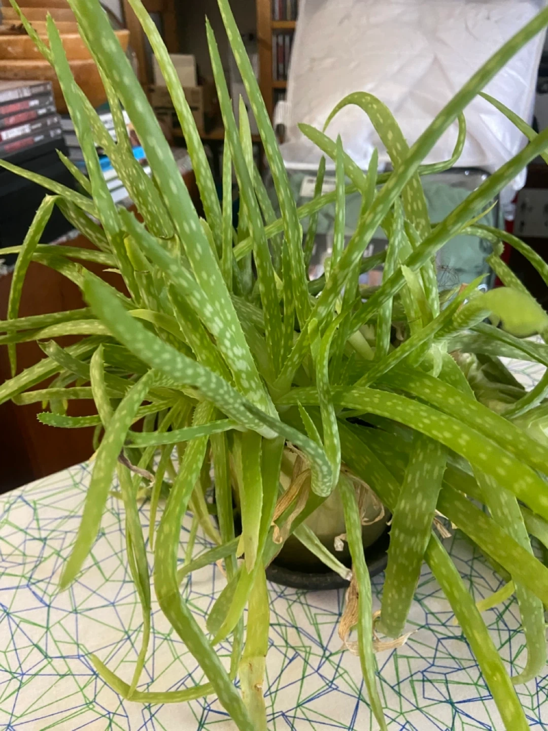 A healthy aloe vera plant. It's a great addition to any home, providing both beauty and air-purifying qualities. Easy to care for and perfect for adding a touch of green to your space. It desperately needs to be repotted and separated out. From a smoke and pet free home. Pickup only.