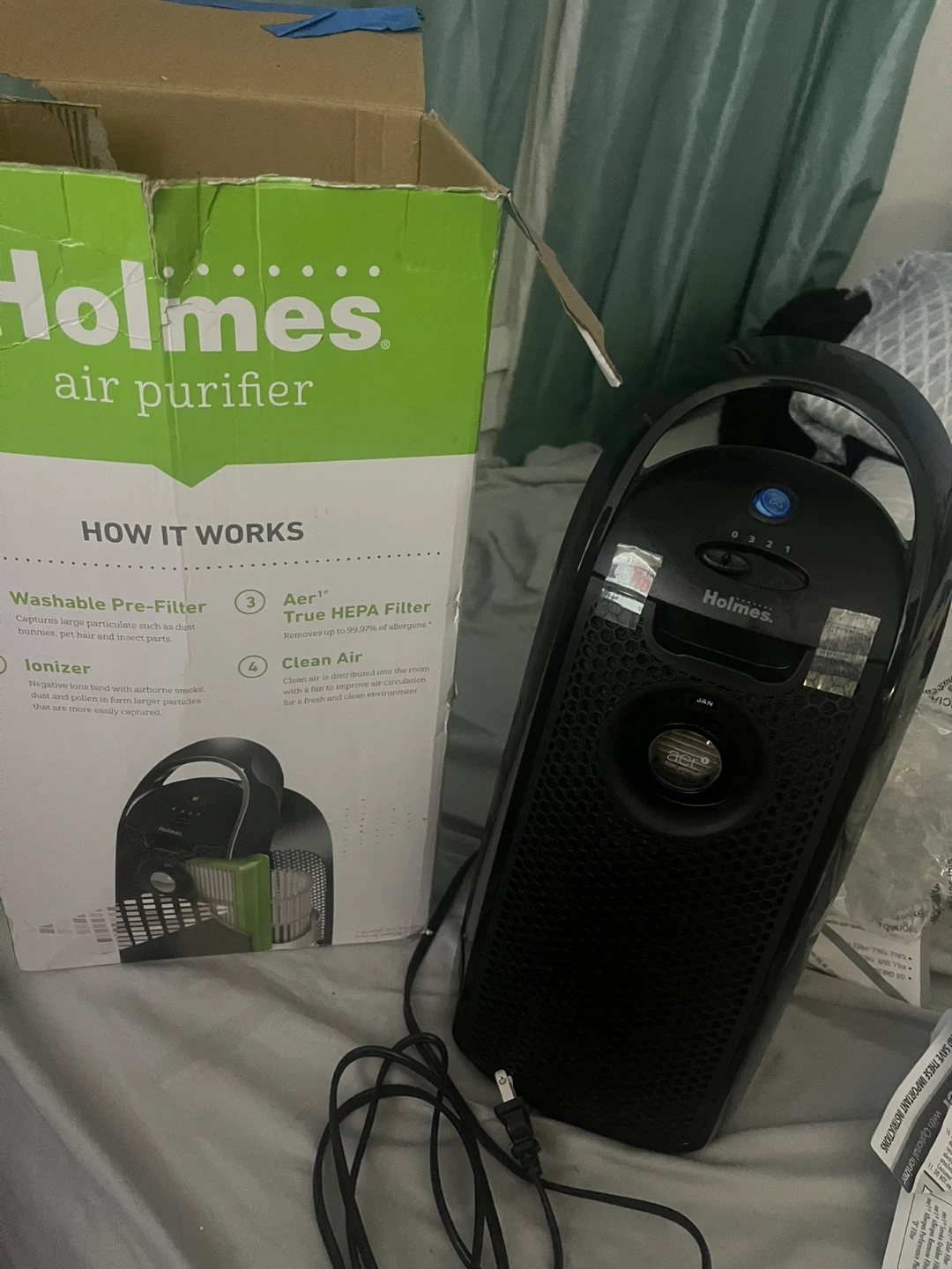 This Holmes air purifier features a washable pre-filter and a True HEPA filter that removes up to 99.97% of allergens. It also includes an ionizer function. Perfect for improving air circulation for a fresh and clean environment.