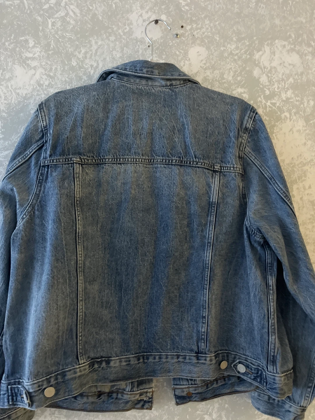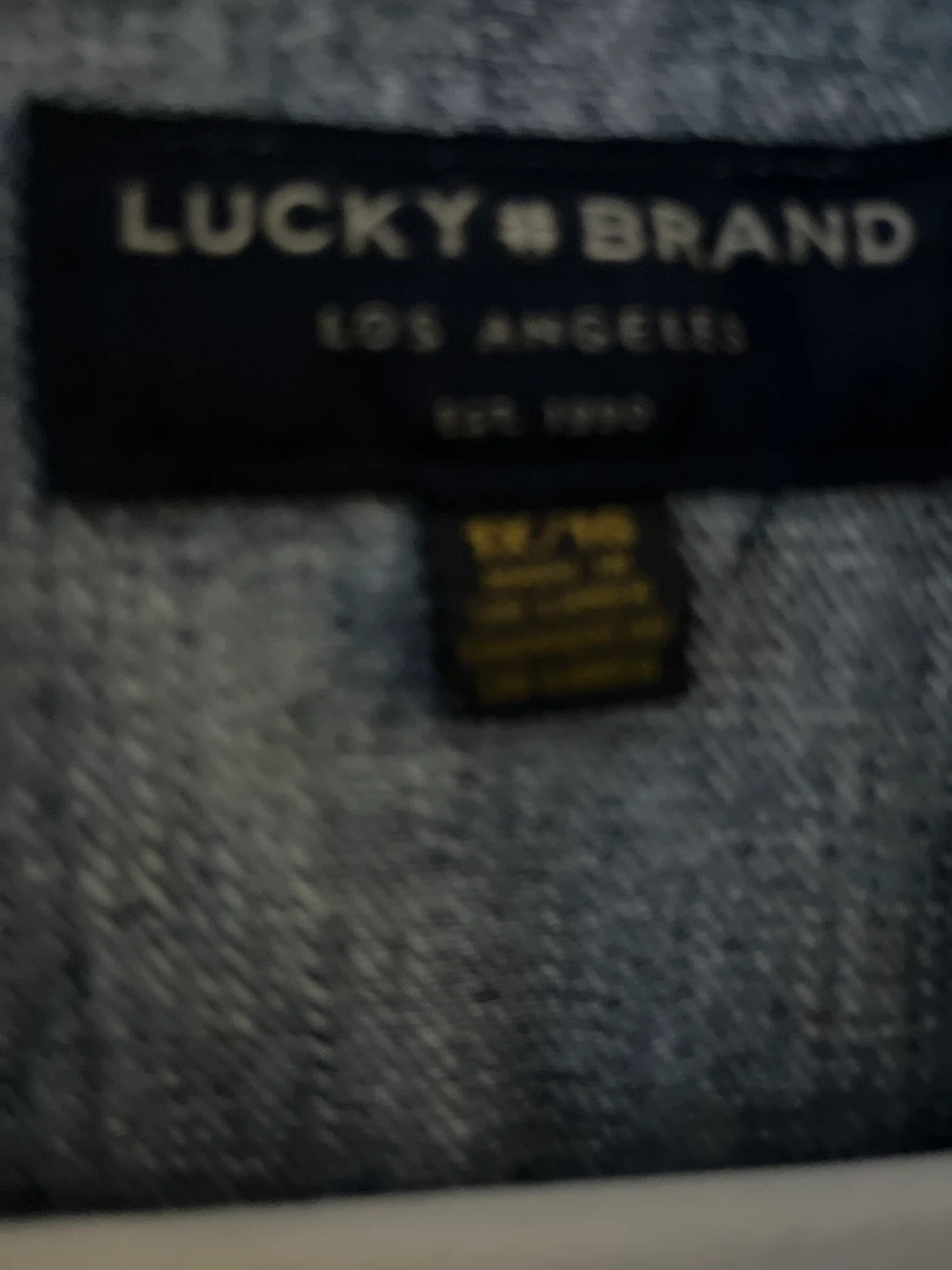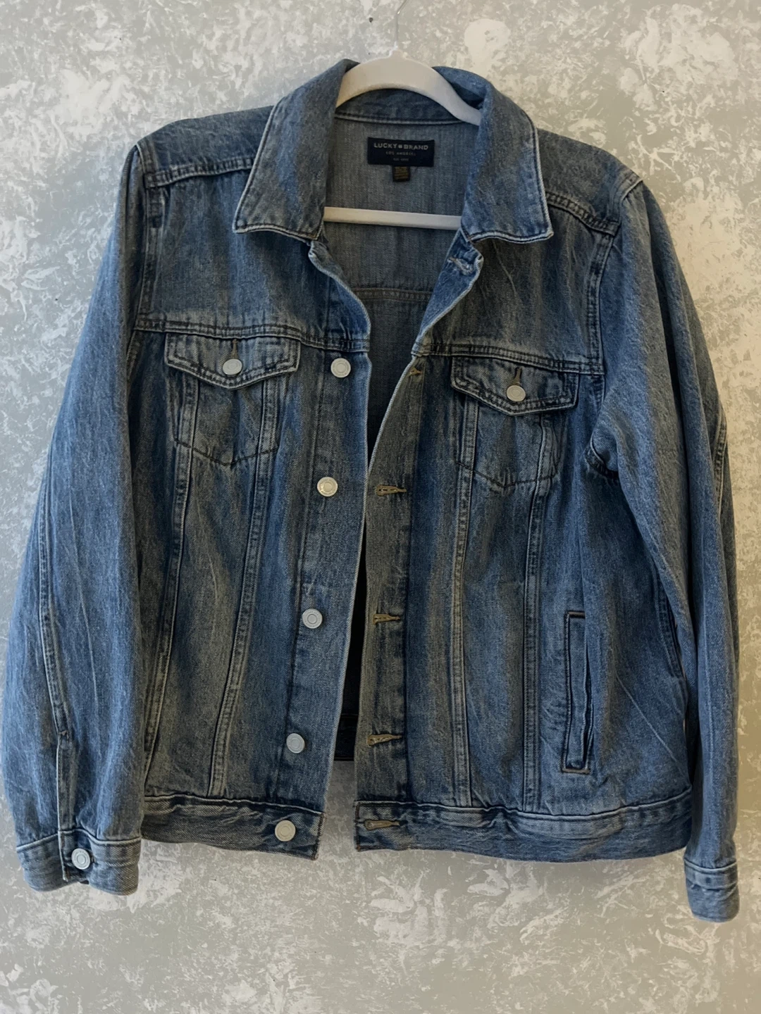 Classic blue denim jacket from Lucky Brand. Features a button-front closure and two chest pockets. Made from durable denim material.