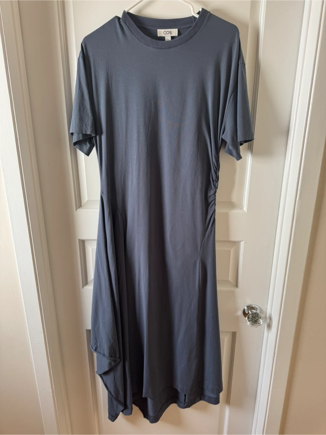 Selling a COS dress in size medium. It's a lovely blue colour and in great condition. The material feels really nice and comfortable, perfect for everyday wear or dressing up