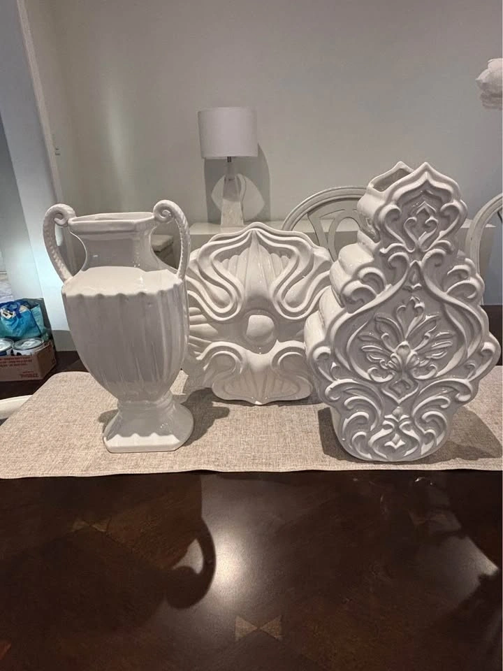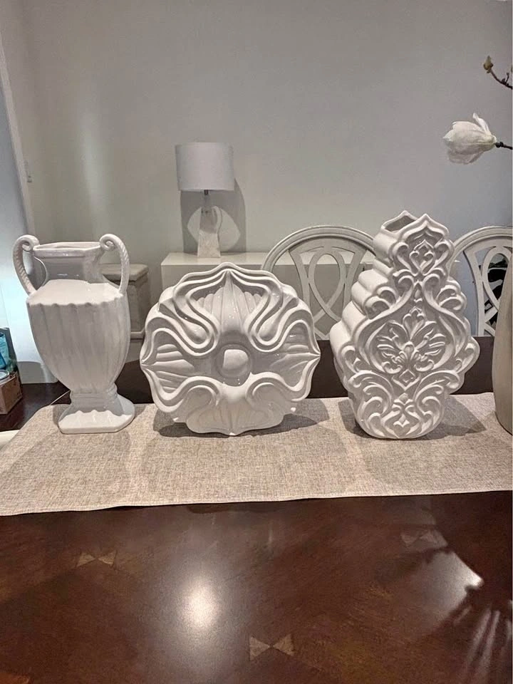 Beautiful neutral decorative pieces that work well on a shelf, buffet, or table. Selling as a set because I’m redecorating. Excellent condition. Pickup in Stouffville.