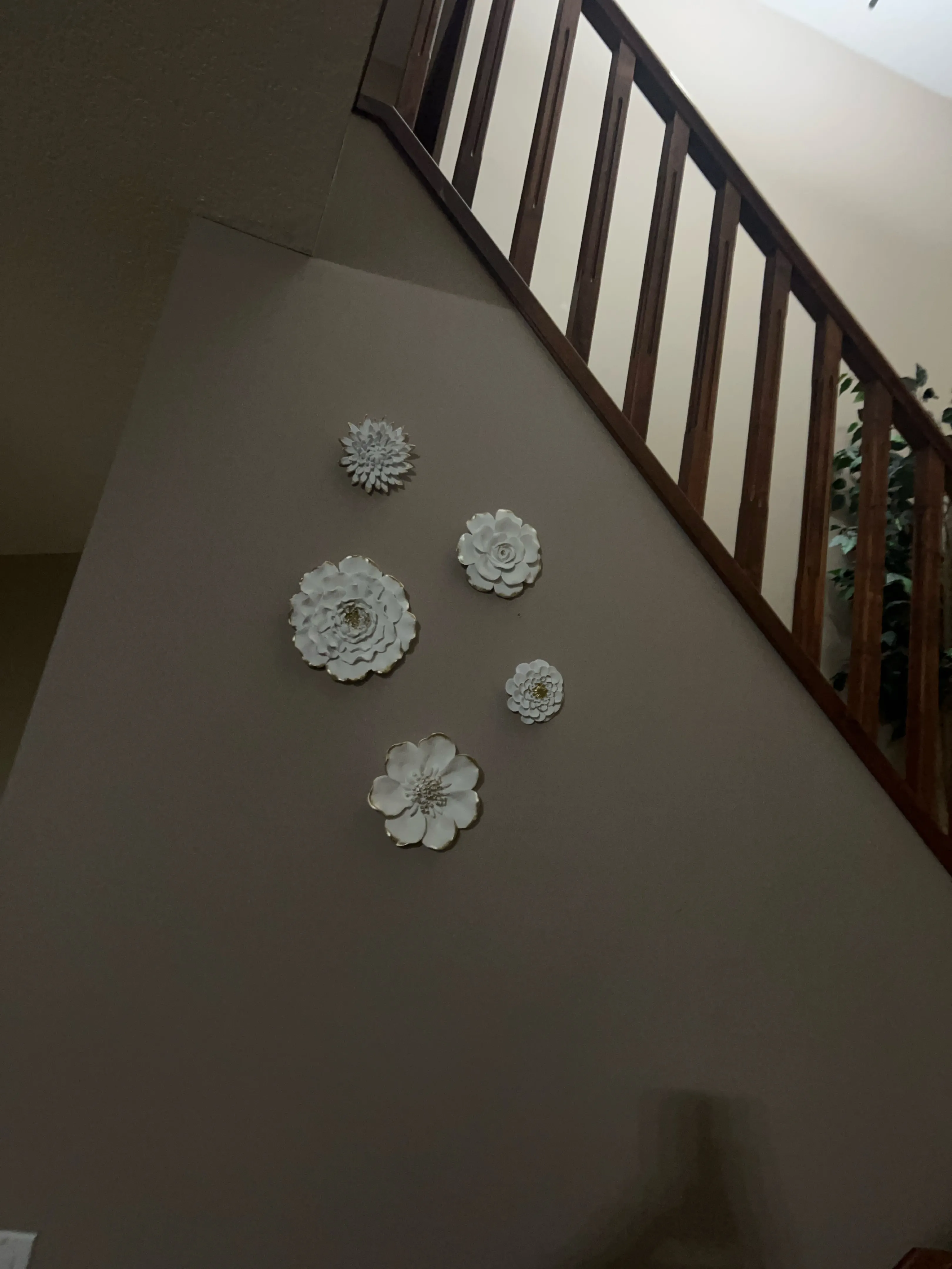 Five beautiful ceramic flower wall accents. Perfect for adding a touch of elegance to any room. Various sizes and styles of flowers.