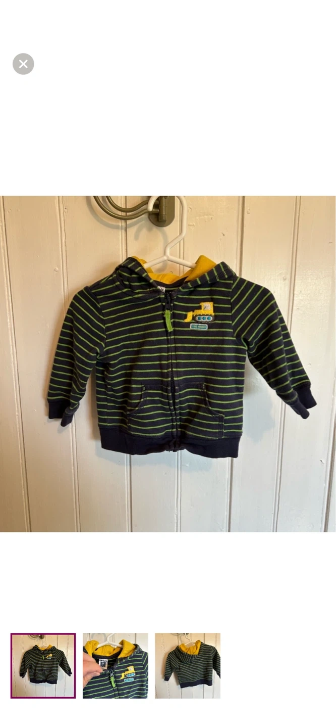 Carters brand. Zip up hoodie. Green striped construction vehicle print. Size 9m. Brand new condition $5