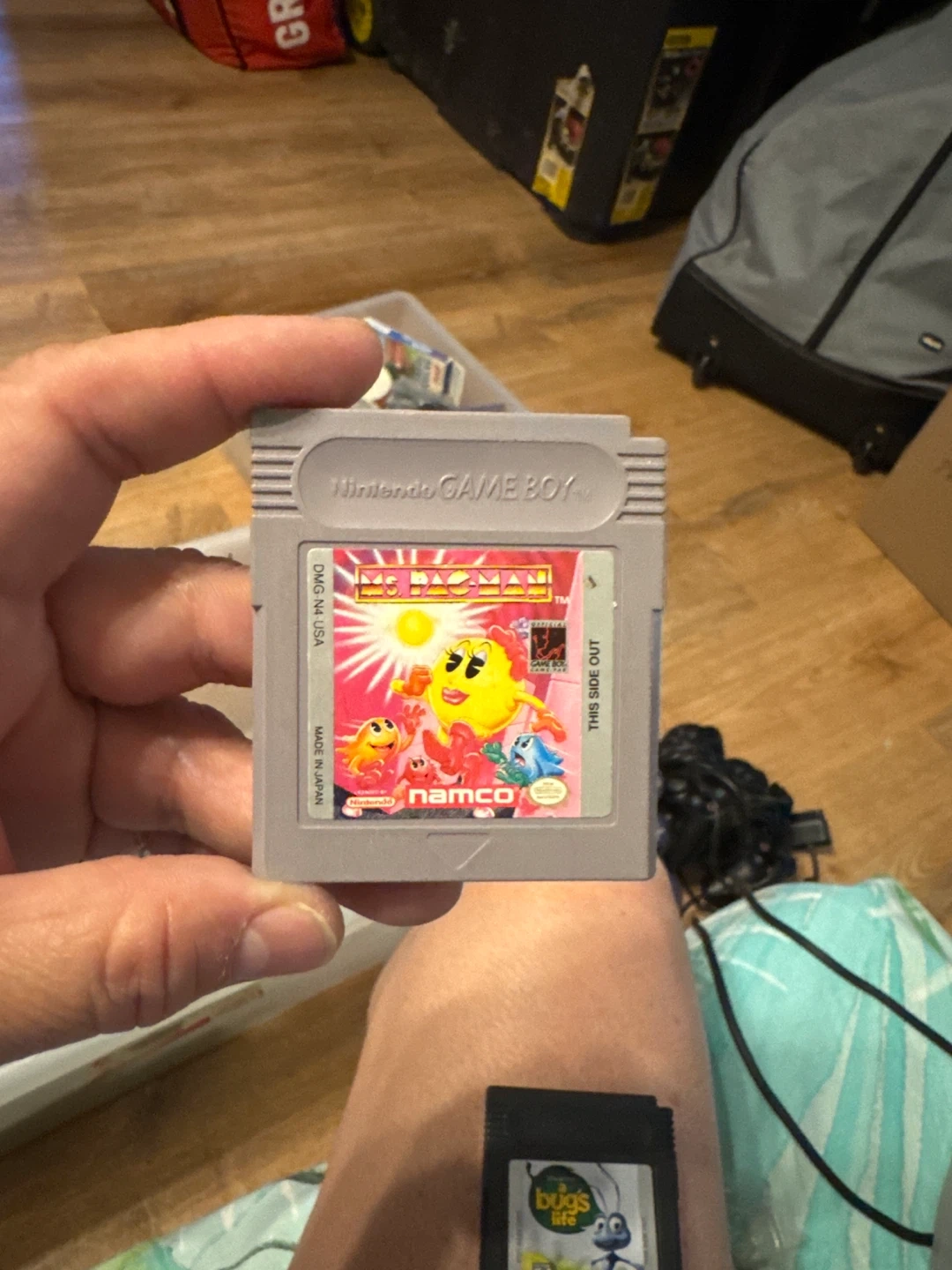 Includes a Nintendo 64 Transfer Pak and Game Boy cartridges. Games included are Pokémon Pinball, Pac-Man, and A Bug's Life. This bundle is perfect for retro gaming enthusiasts!