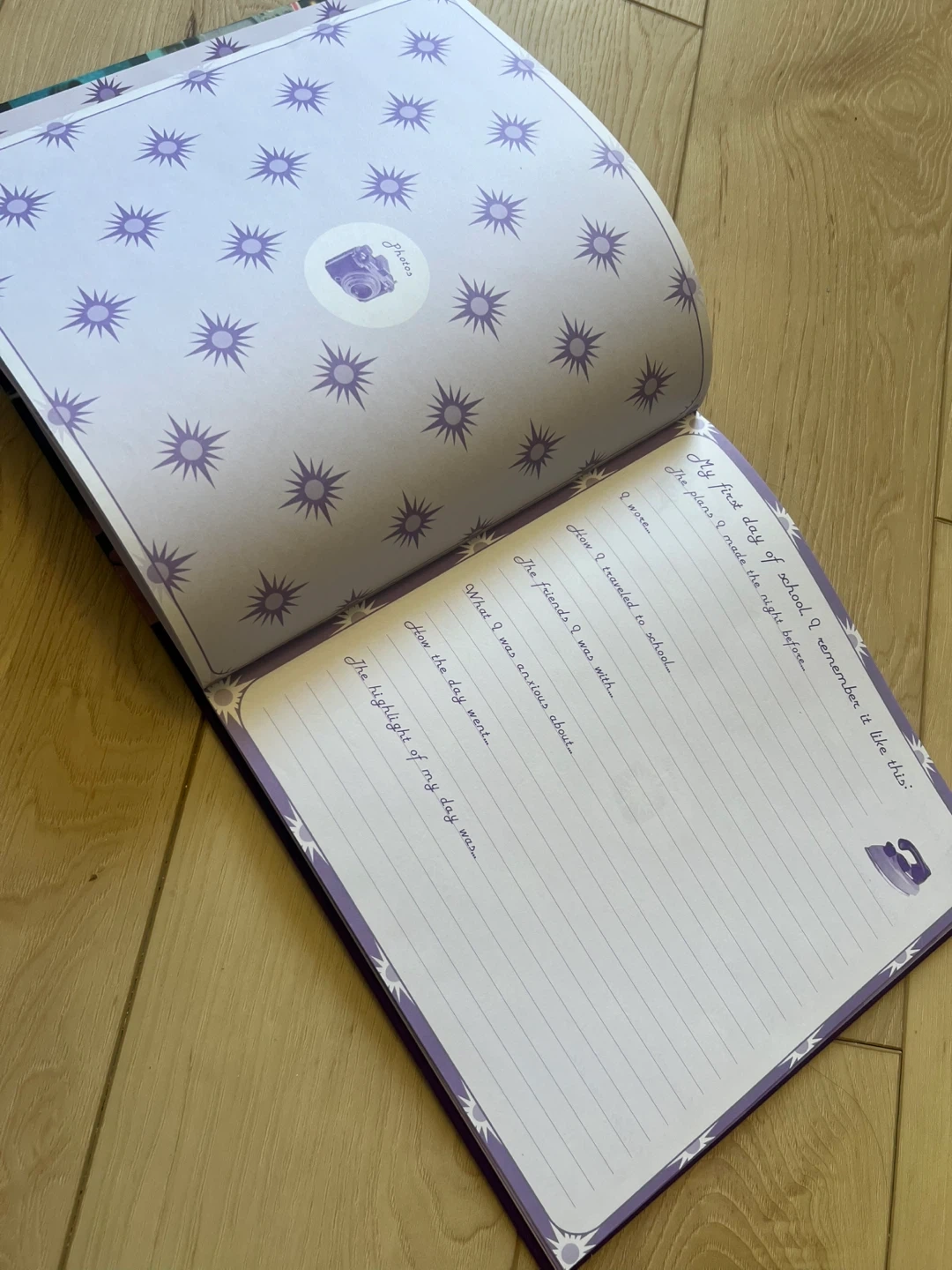 This is a vintage school memories record book for journaling your school years. It includes prompts for first day of school, memories with friends, and highlights. It's perfect for students to document their school journey!