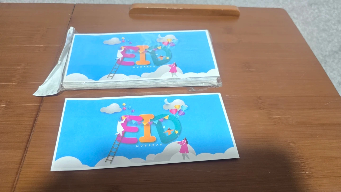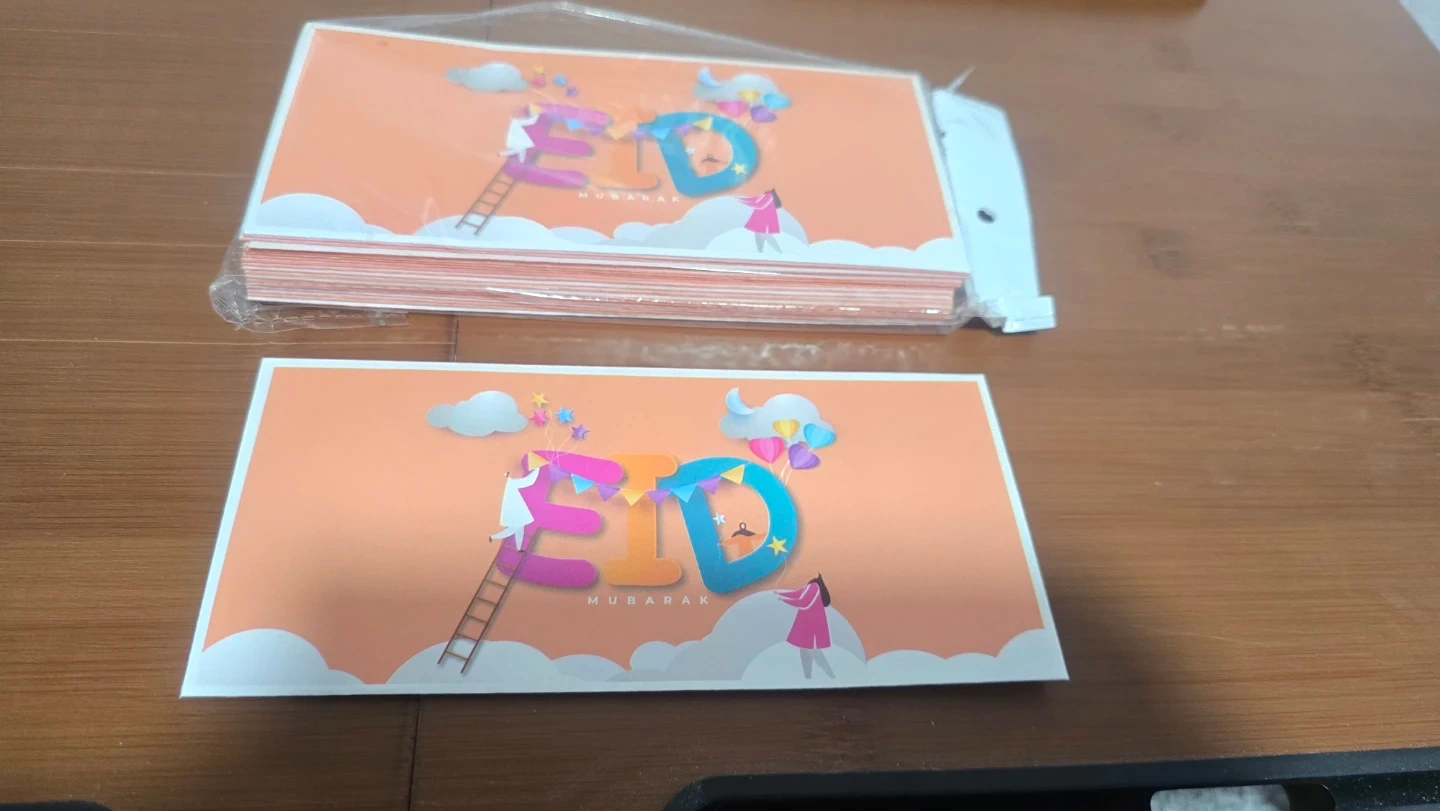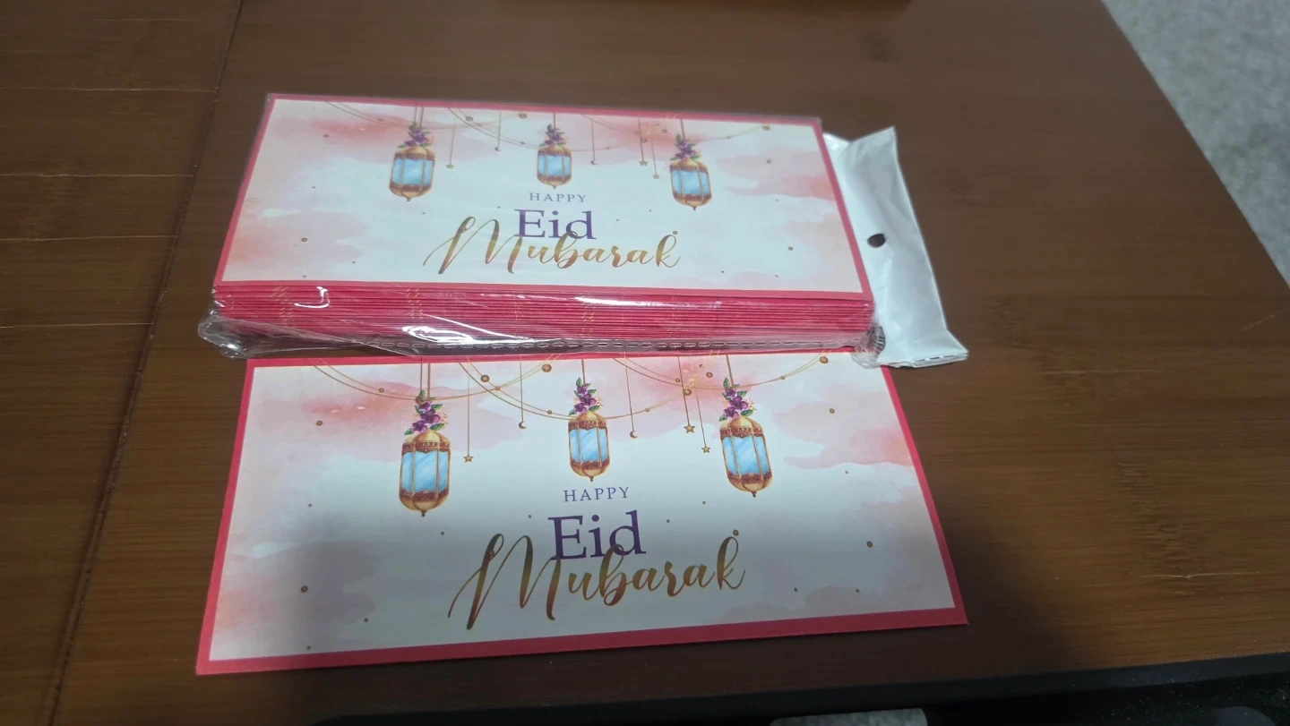 A pack of assorted Eid Mubarak greeting cards, perfect for sending well wishes during the festive season. Each card features a unique design suitable for the occasion.