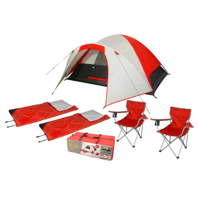 HDG 4-Person 9 ft. x 7 ft. x 52-inch Polyester Tent with fibreglass Pole This combo value kit has all the features you have been searching for. This spacious 9 x 7 x 52-Inch (width x length x height) tent provides protection and privacy, with an exclusive weather-tec system that will keep you and your personal belongings nice and dry. Easy instructions are sewn into the durable carry bag. ✨Used once - In perfect condition ✨Ideal for family outdoor activity ✨Easy set-up and take-down ✨Includes 1 tent, 2 sleeping bags, 2 chairs, and an expandable carry bag. Let me know if you're interested!